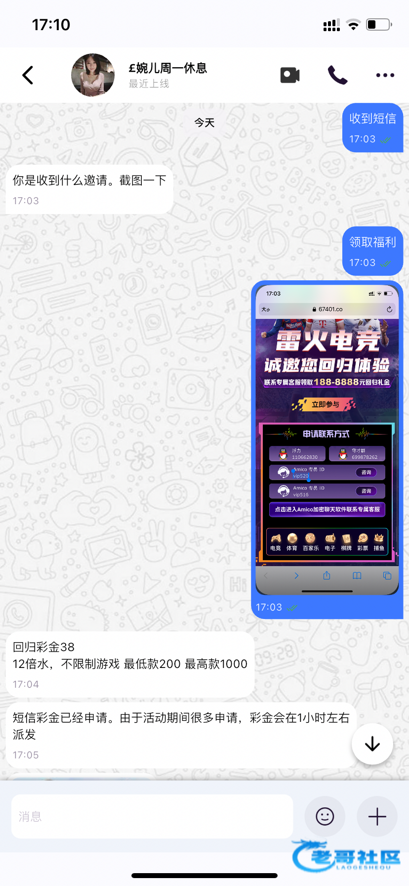 就是这个客服,我也收到了,还让我先存款再领,