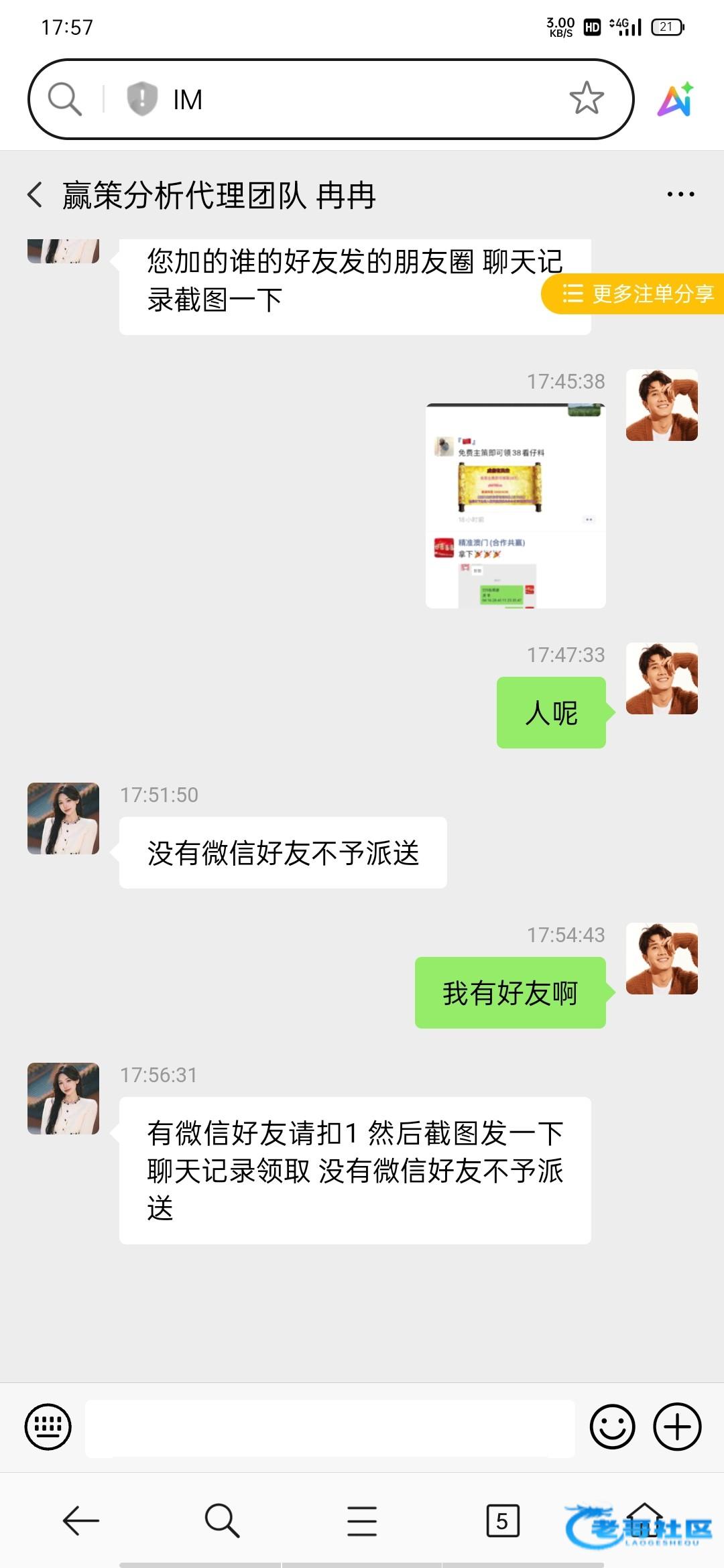楼主,他要微信好友才送