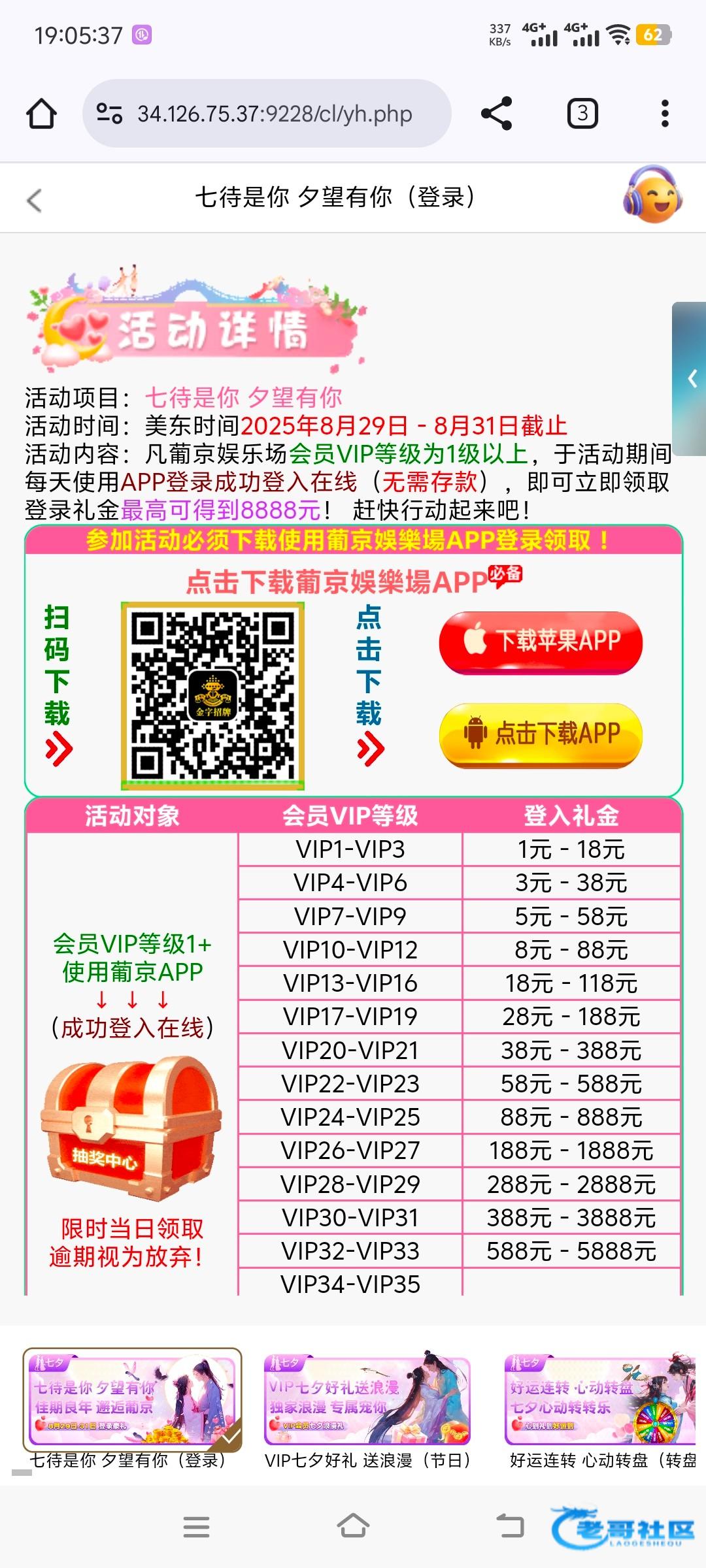 有账号有vip的美东时间8月29号下载app登录领取七夕登录礼金,官网: 8733.com 6202.com 89274.com 勿充值,勿骂我。