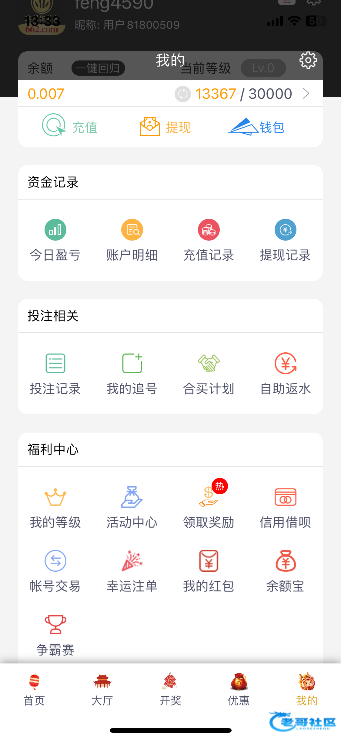 我没有等级,v0,因为我玩彩票,彩票打码不算