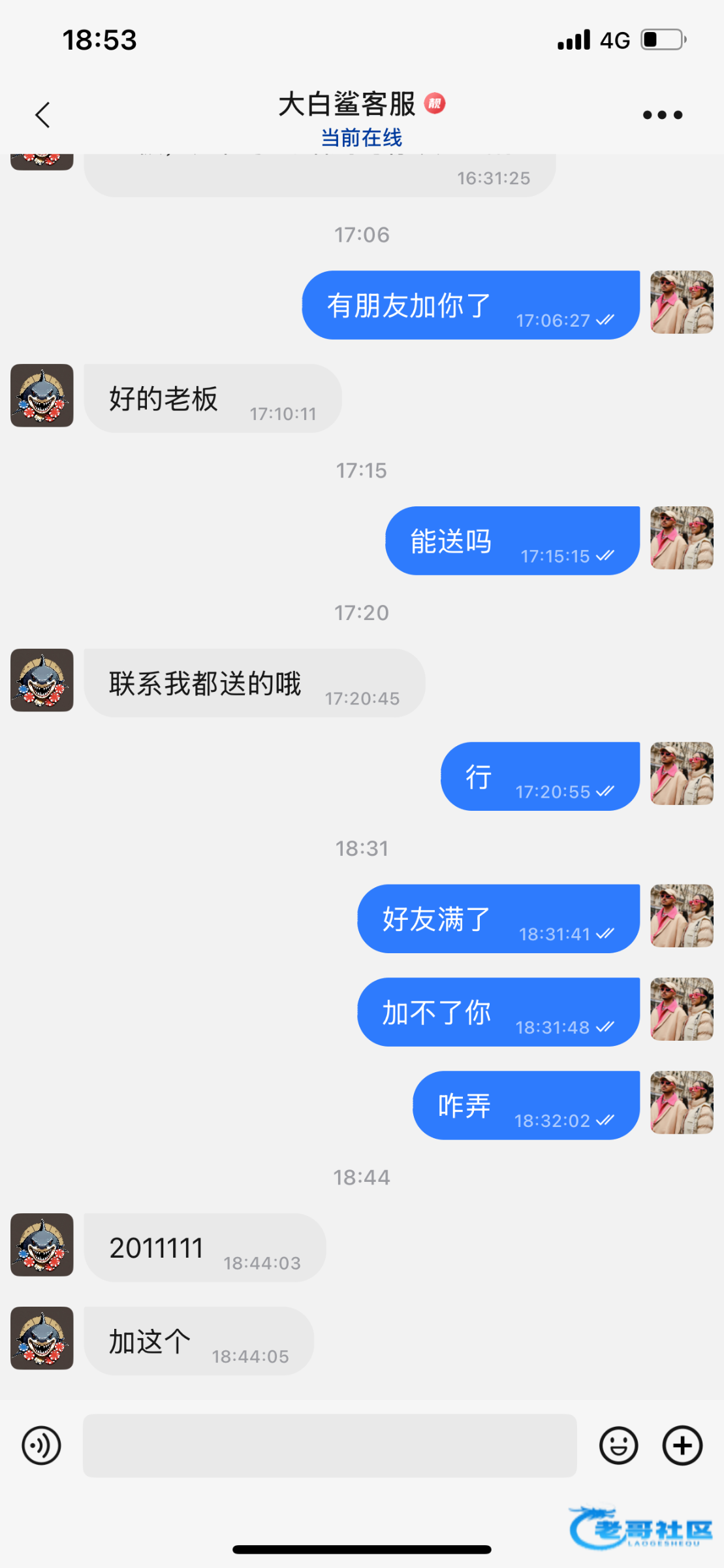 包鲨鱼,前段时间加我的时候叫风云,现在大白鲨