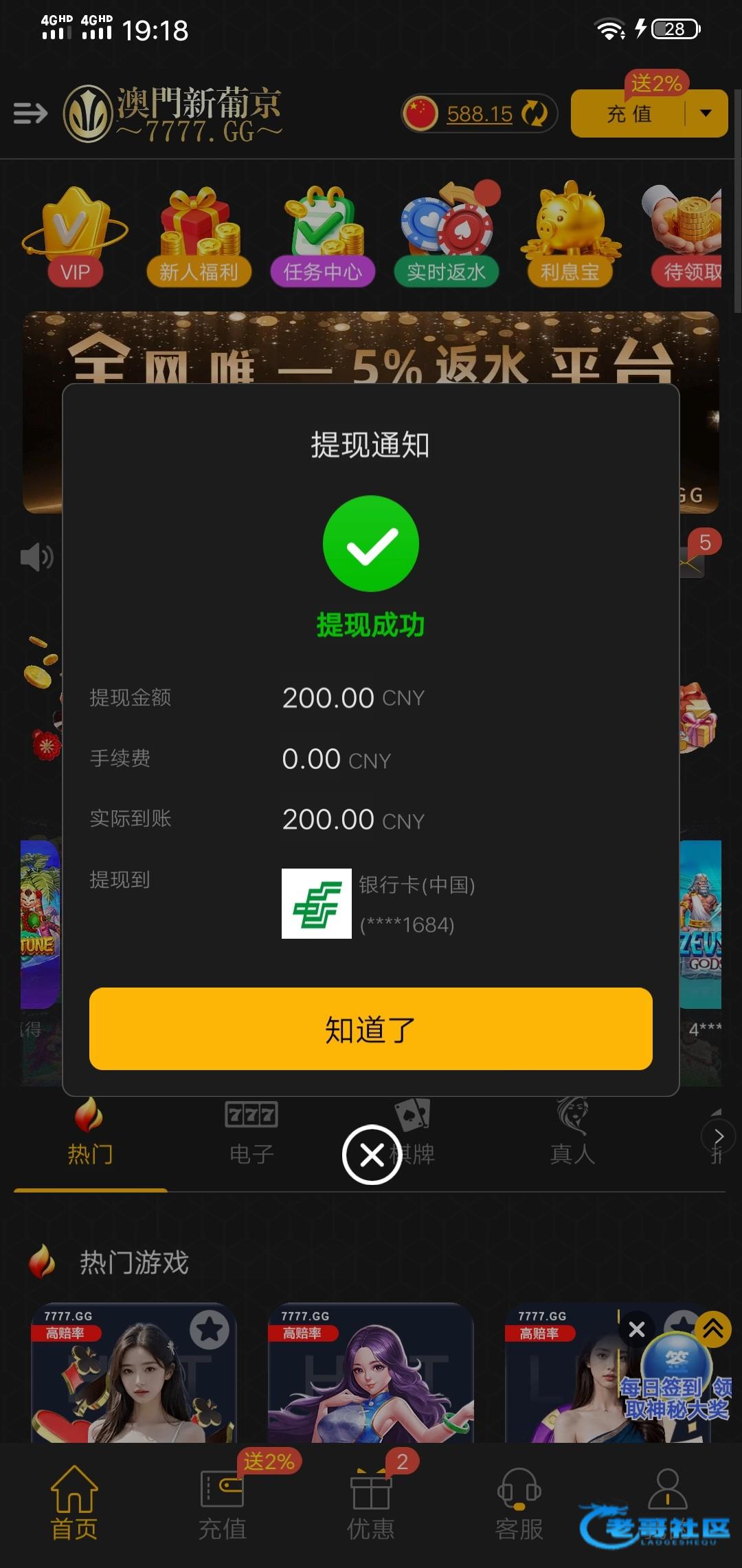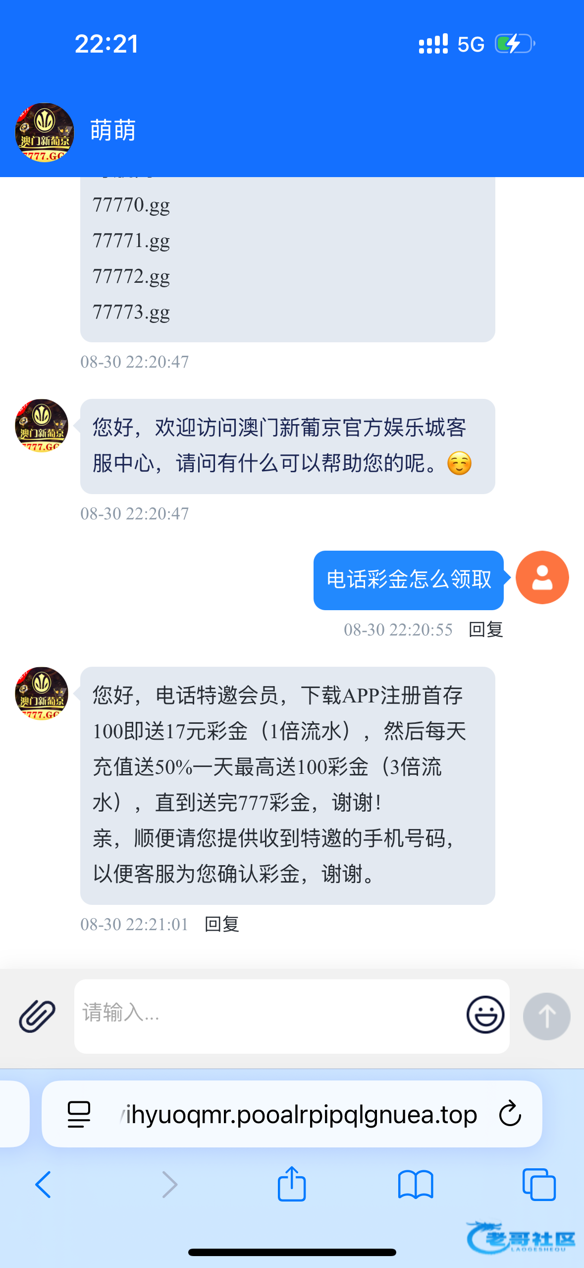 接到电话找在线客服申请58,客服说是一倍流水不限制游戏,白嫖就行请勿充值7777.gg