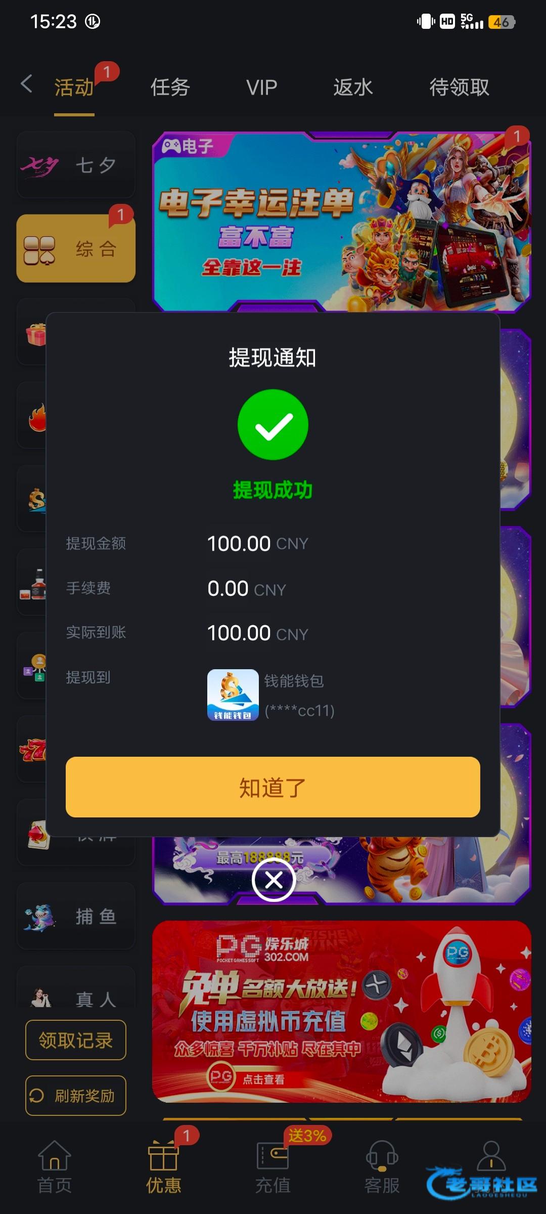 打电话来叫我注册,上去发现有号了,领过一次了,抱着试试的心态在申请又送了,出了一百 612302.com 特邀链接www.602hd1.cc