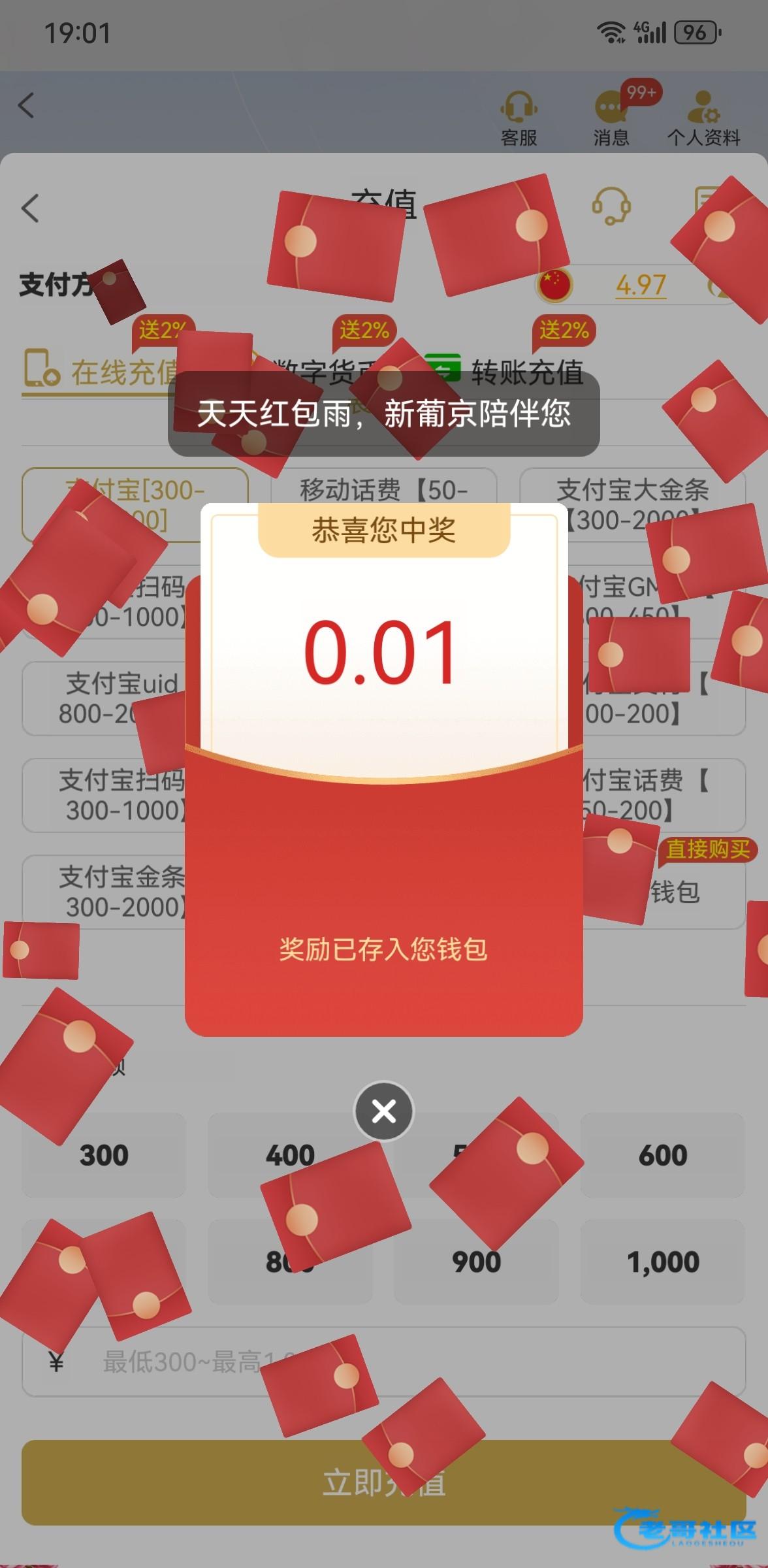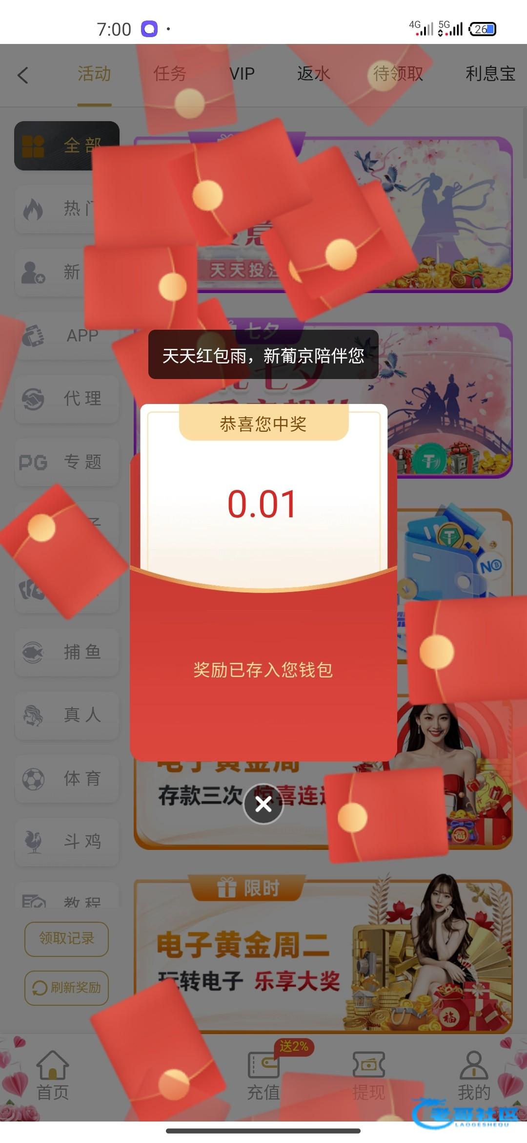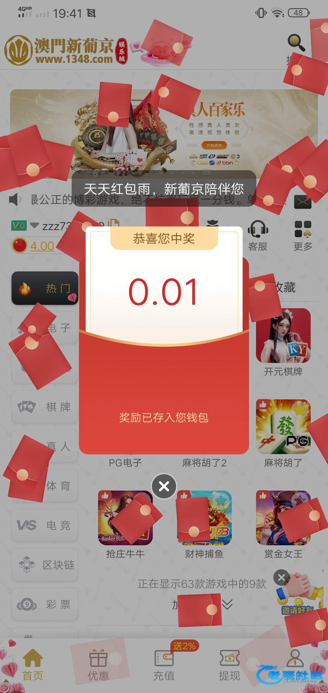 周六抢的多其他时候一天三次,每次都是2-3,每天两个神秘彩金,3-4元,我就想不通怎么就0.01呢?我一共充了50,每天神秘彩金加红包雨10元左右