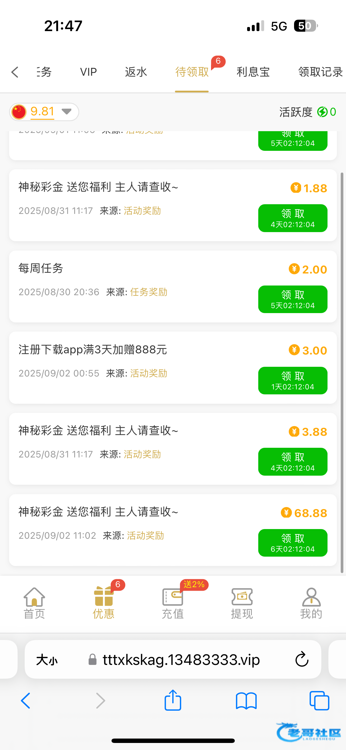 老哥&yyDS ▶ aa23311 每天抢红包的彩金不需要流水,神秘彩金需要流水,每天十几块钱的彩金,红包二连还有十倍奖励,不是挺好一个台子,那个傻子自己打不出来一个劲墨迹,真他妈的,发个帖子还得看他心情 4月前