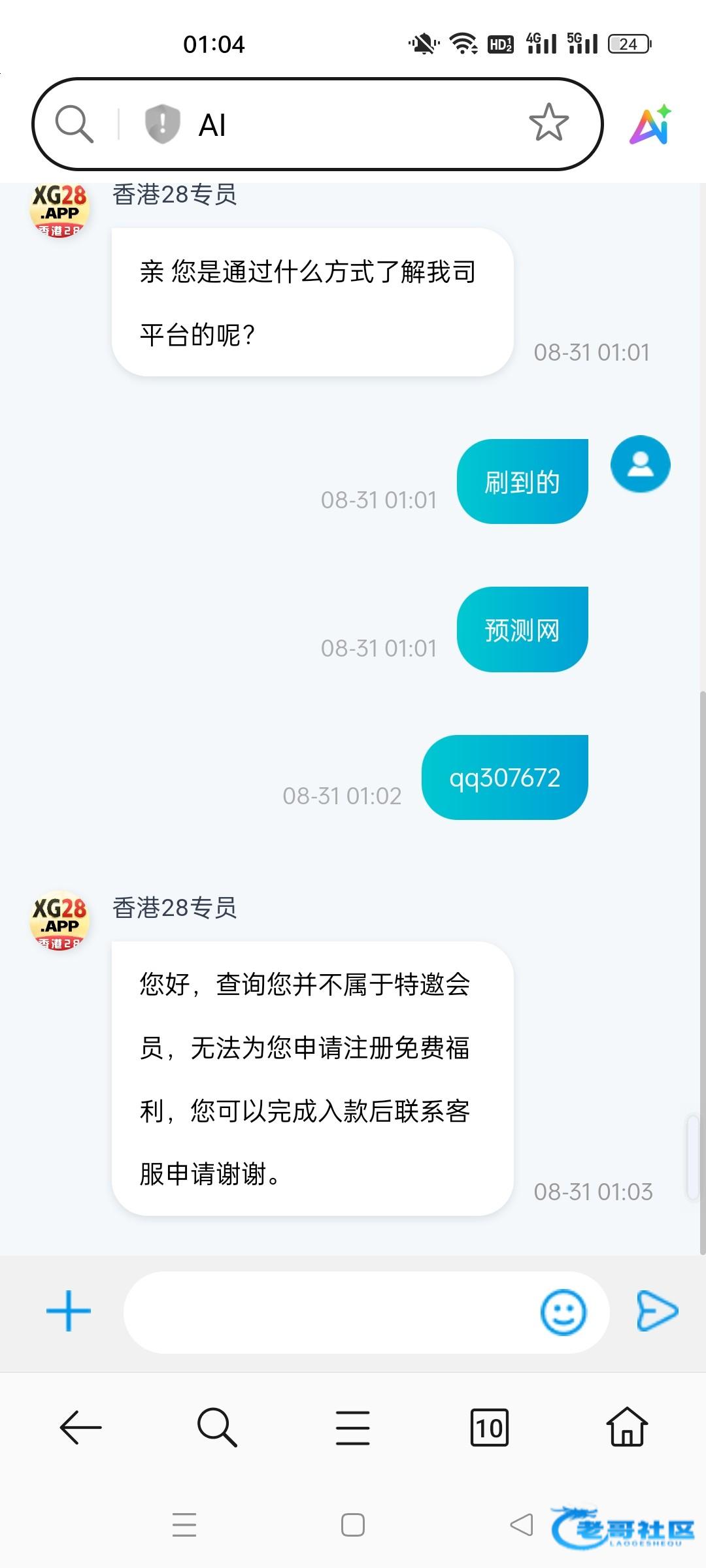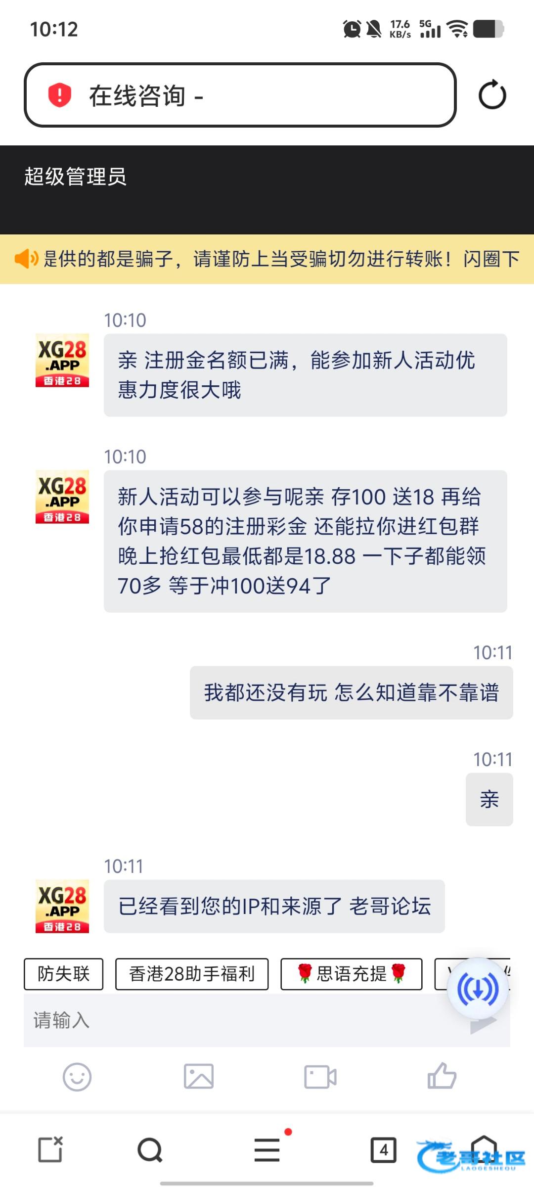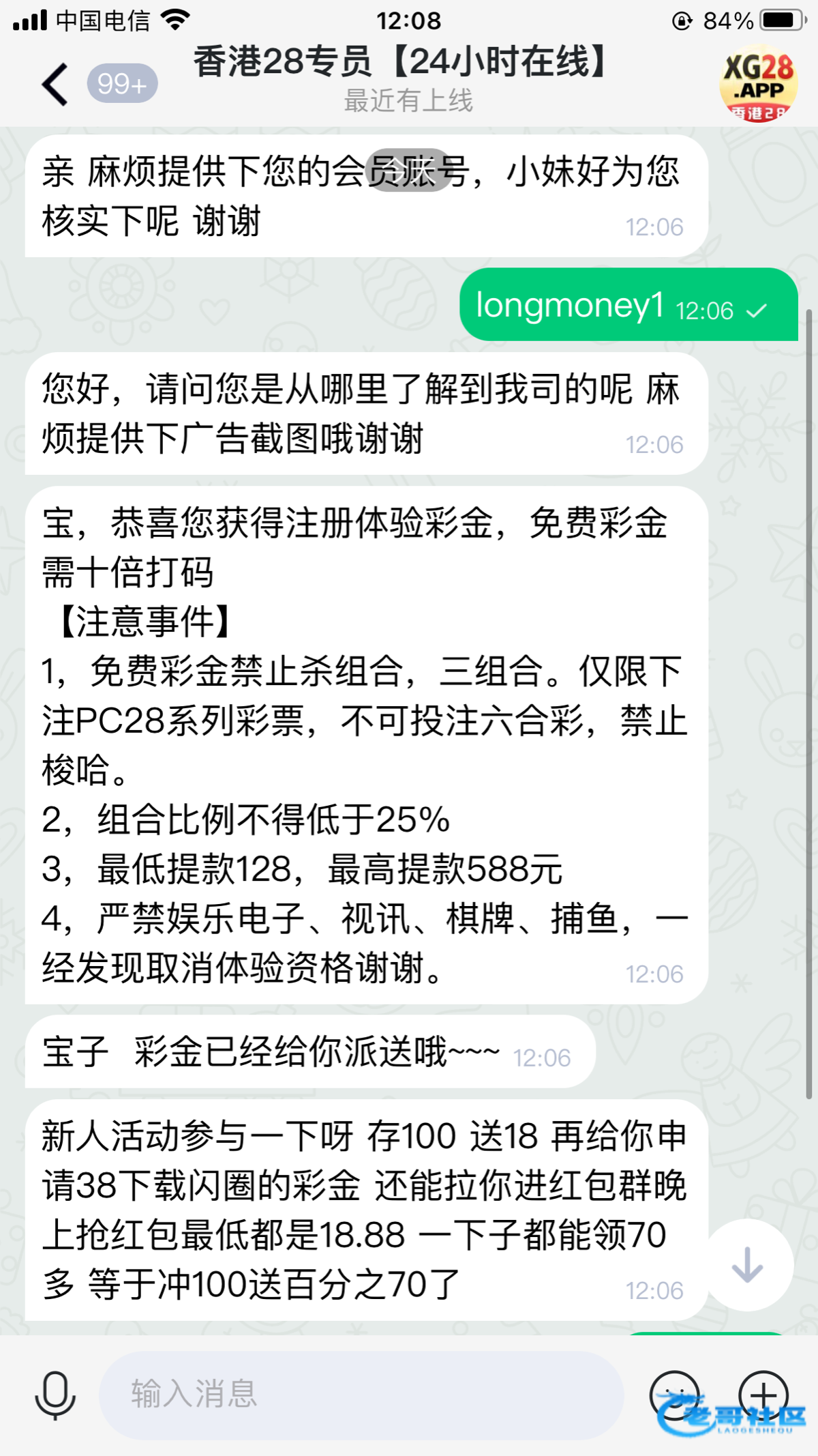 香港28注册送58,注册完绑定出款方式找在线客服说领取注册彩金她会问你哪里来的,就说预测网看到的,然后她会发你一个链接添加专员然后重复上面操作即可,亲测出款300,预测网连接在图中自行复制,望各位老哥得吃,出款给弟弟团一个