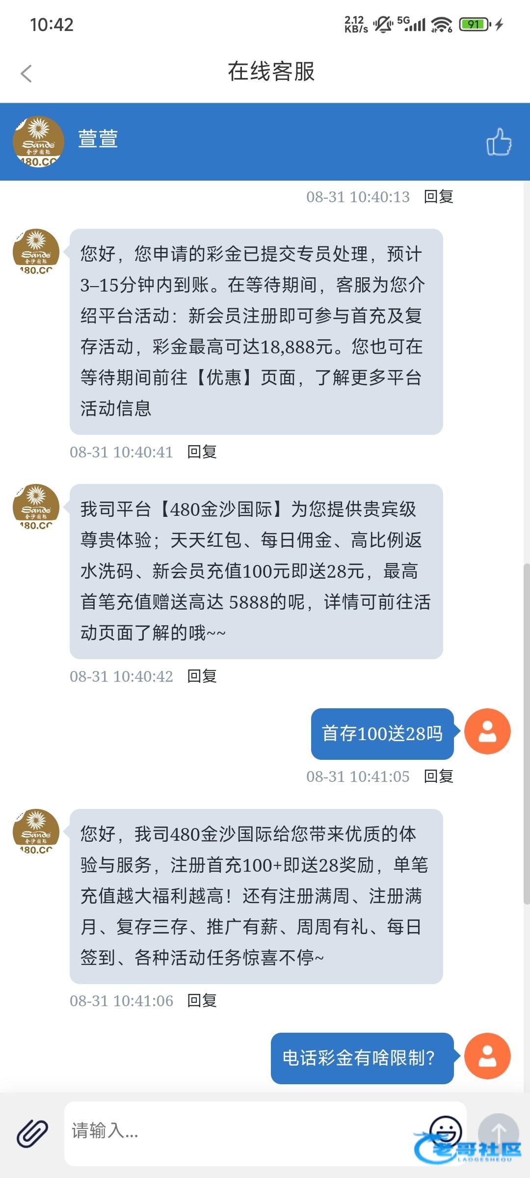 电话彩金 480.cc 我没有接到电话,直接去找客服说电话彩金就行,充值过的赢了应该可以直接提,没充过打出来可能要同等,出款自测,反正我充值提现没被黑过