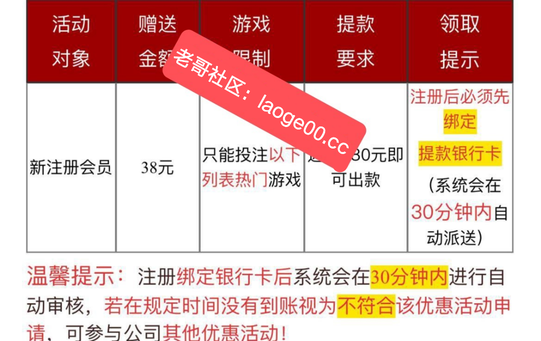 新用户下载app注册绑卡,完善信息,符合要求30分钟内自动到账38彩金,还有下载app18彩金,活动详情平台查看,具体自测!