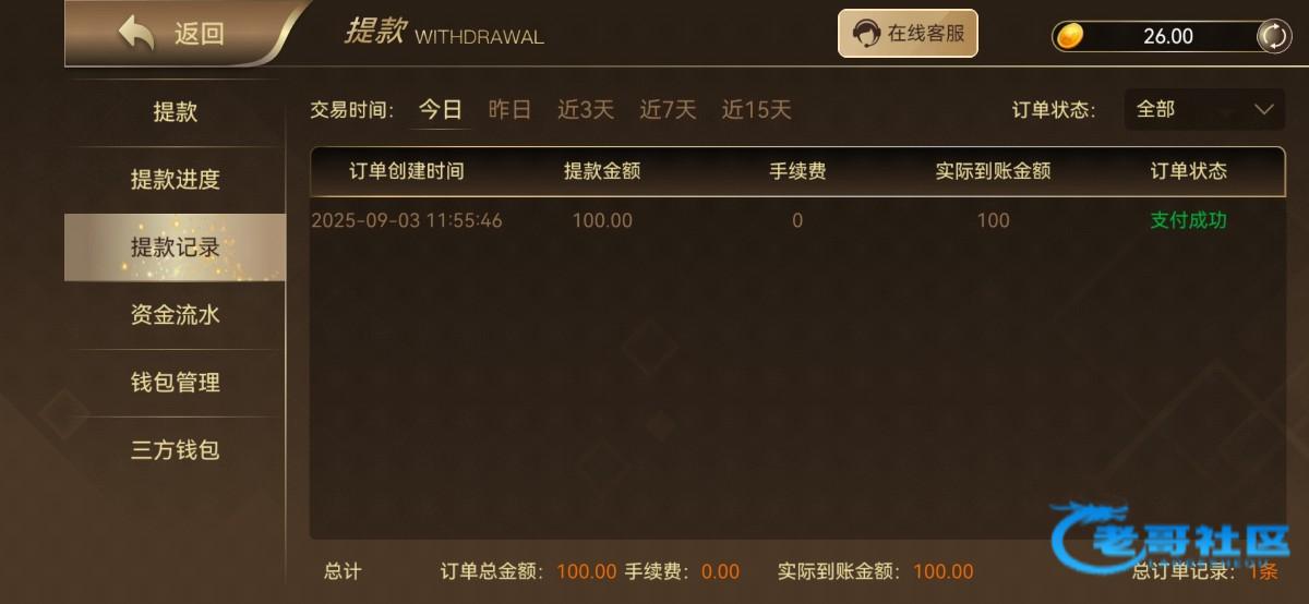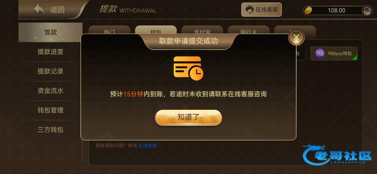 3块钱上108 提了100 不知道能不能到账