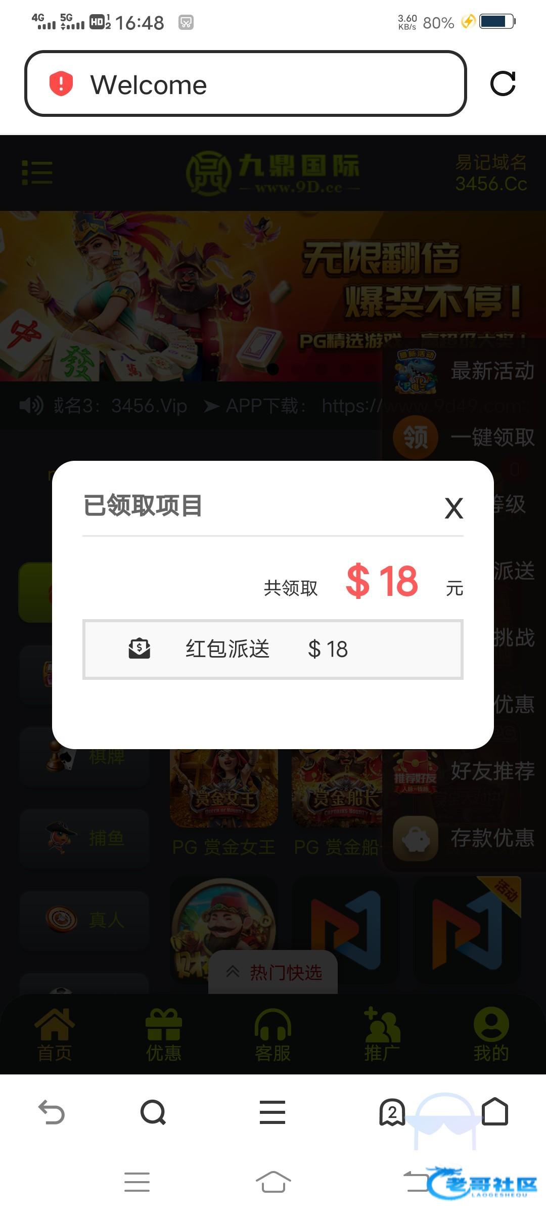 送18。有号的去看看,一直都不接电话,刚才按错了,接了听见他说9鼎我直接挂了,论坛搜到网址进去有18,我从来没充过。有号的去看看。9d.cc