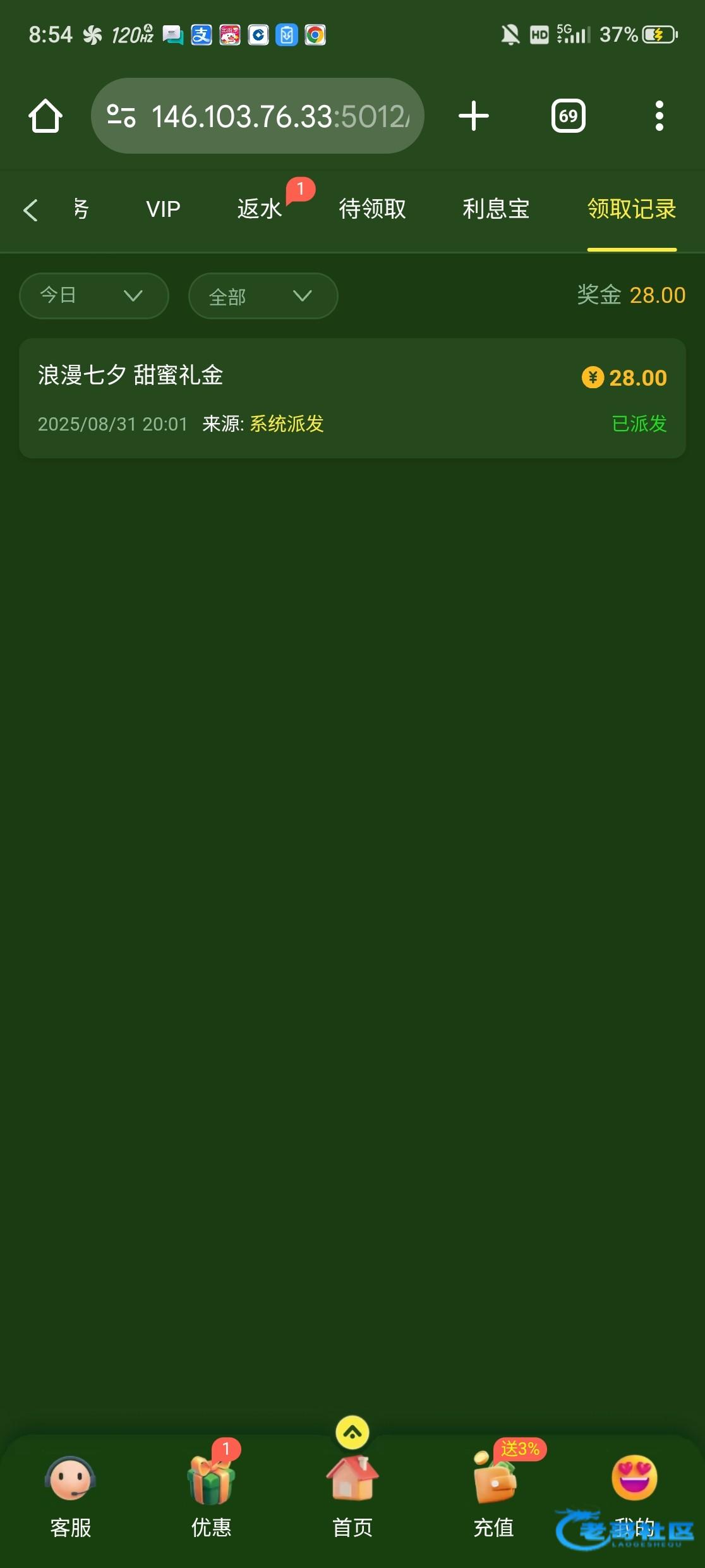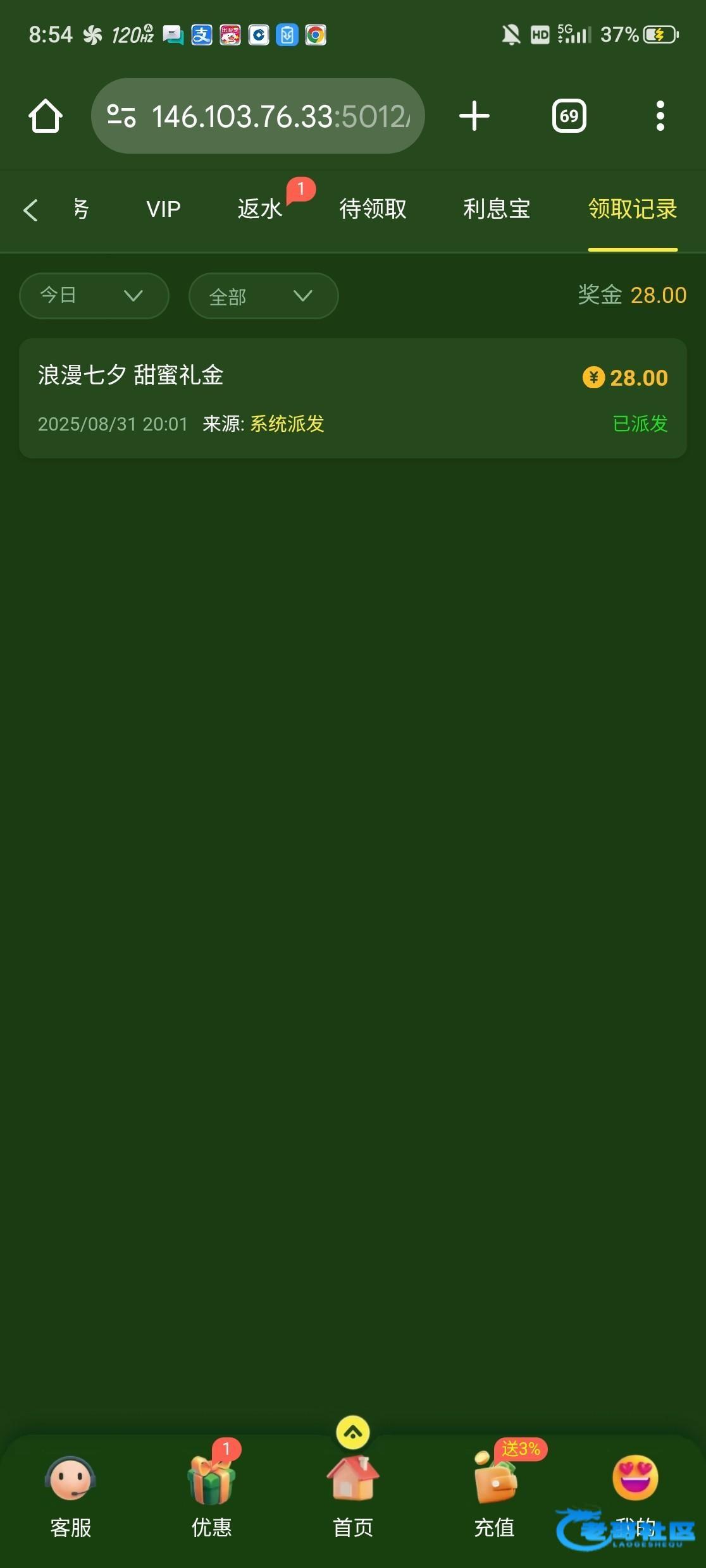 3615历史充值一百,有机会给七夕彩金登陆看一下吧,3615.com,我送了28