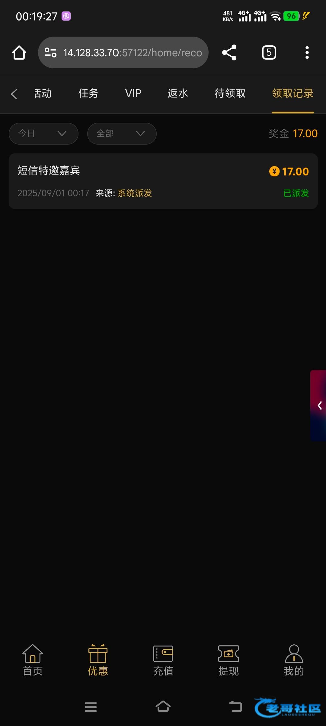 手机号都可以领,一个设备只能领一个,那些傻狗说同ip出了的也是杂种