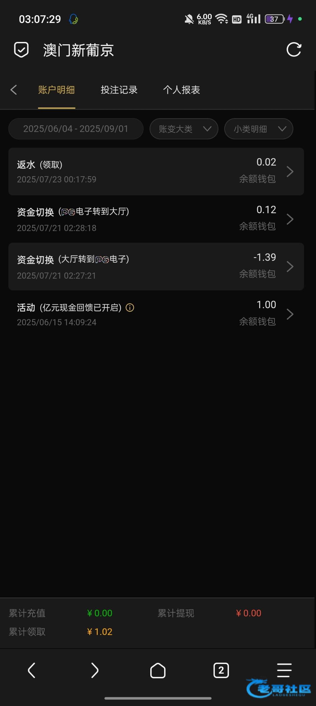 特邀嘉宾彩金和以小博大打不出来,前天晚上50上1100.提了940
