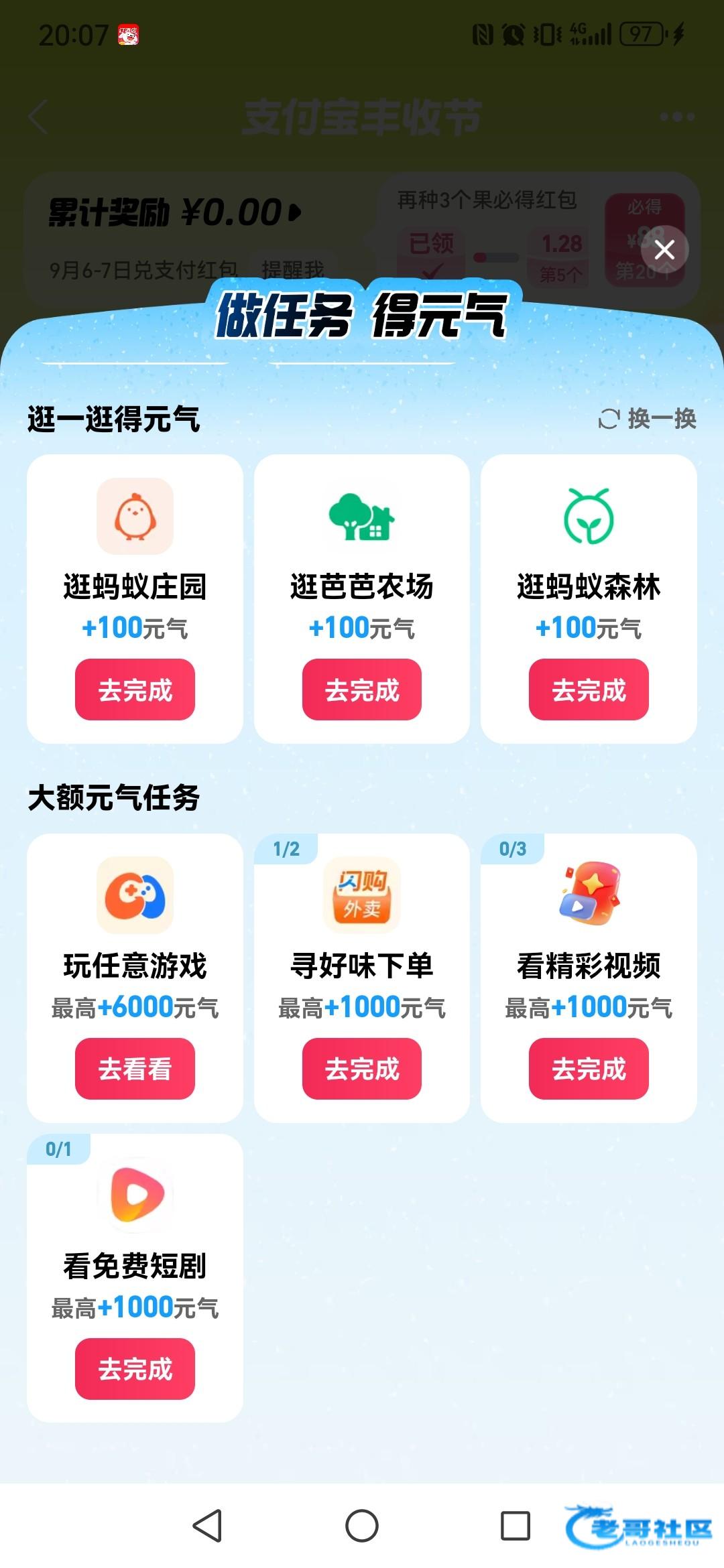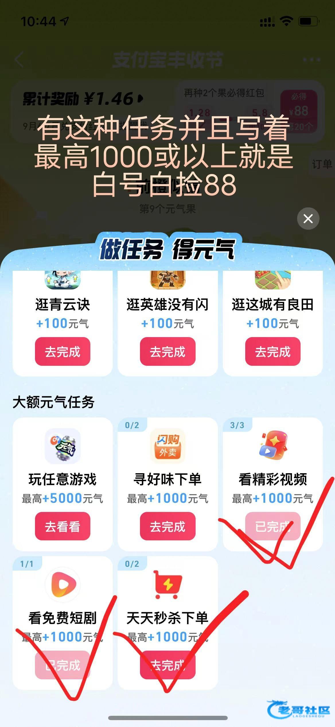 支付宝搜丰收节,去做基础任务,做完后 去升级到5级,然后去抽奖概率88。先检查是不是白号,如果是就去做任务升级到5级 然后去抽,不中就拉一人再抽,有这种任务并且写着最高1000或以上就是白号,黑号不用去。做完任务至少要半小时。嫌麻烦的不用去。早上水已经过了,现在有没有水自测