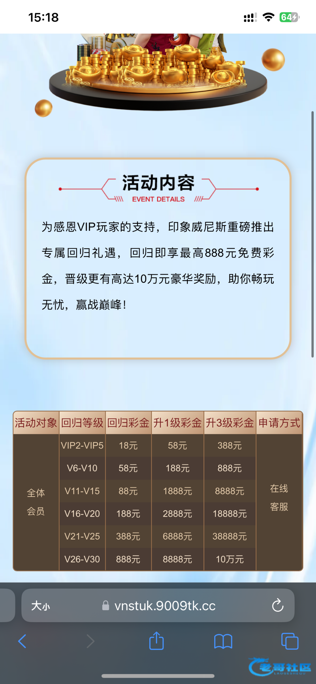 上去有18上个月送的我都不知道什么彩金