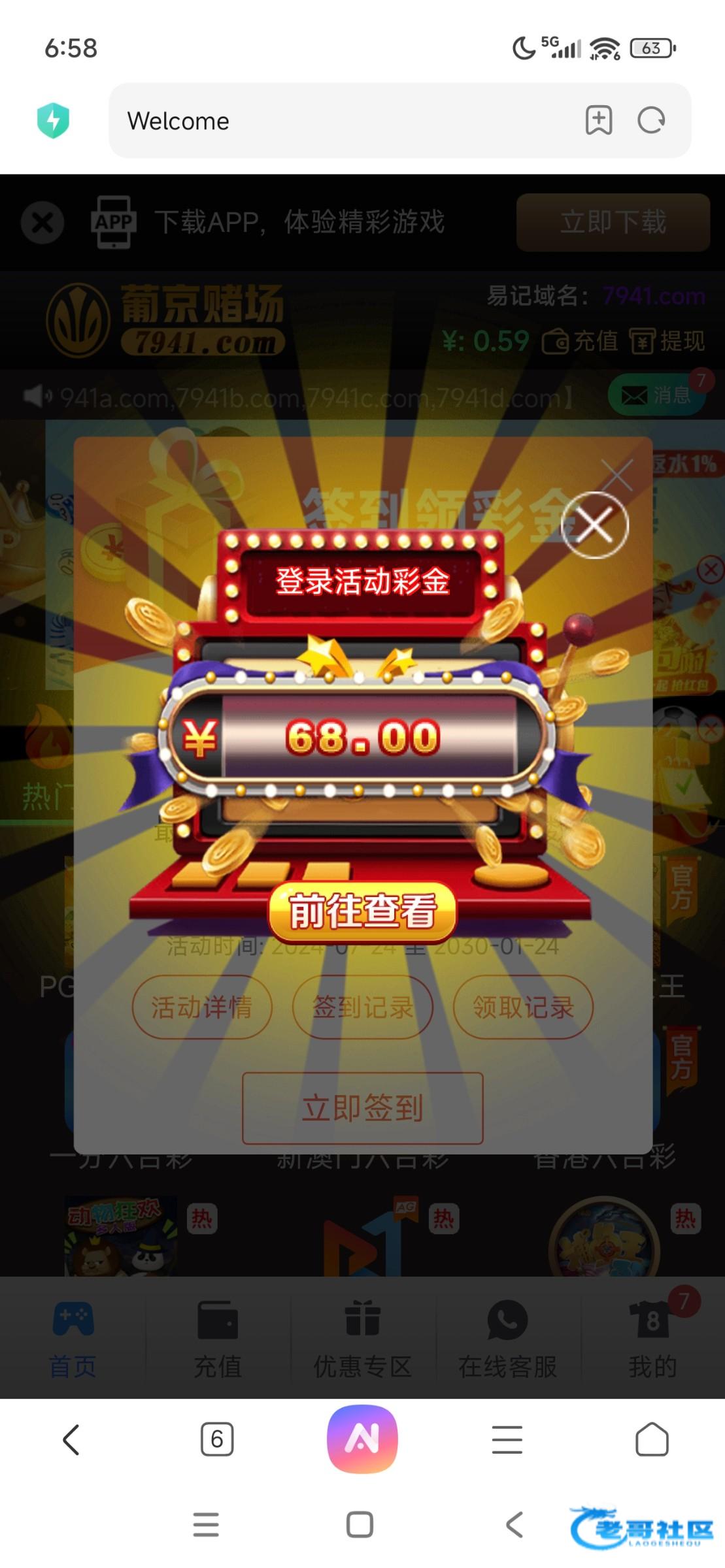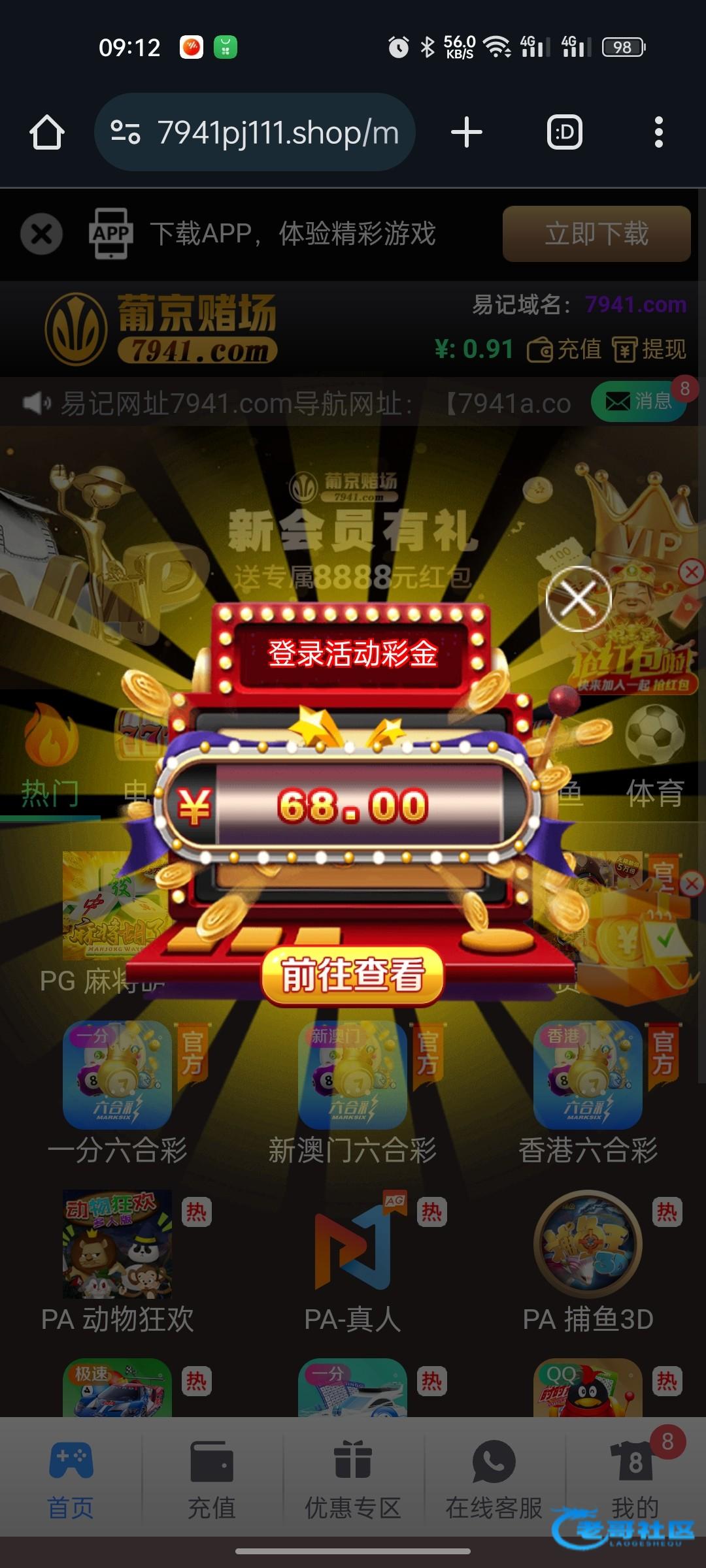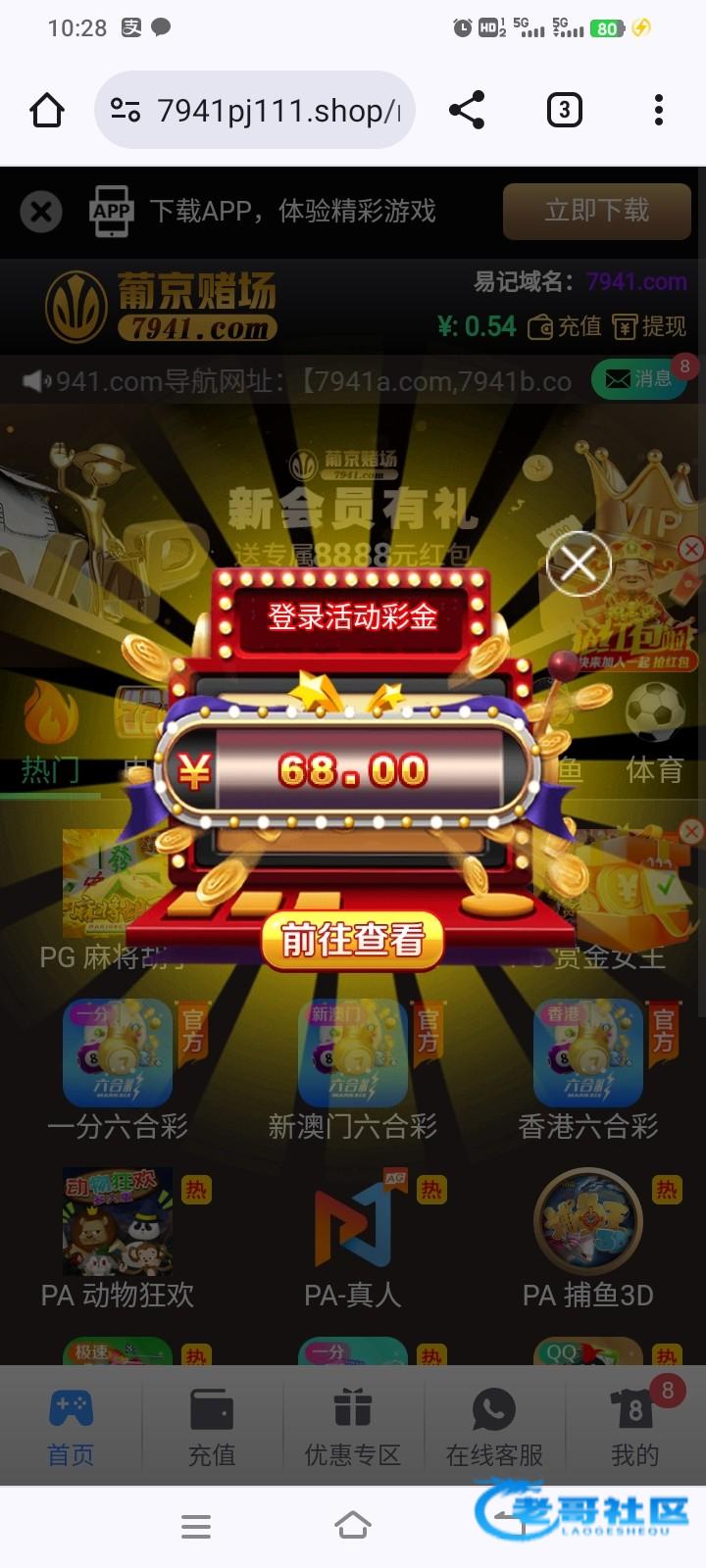 这种台子发现了9个,都注册了都存了100 还连送3天28 美滋滋 等待下次登录送68 爽