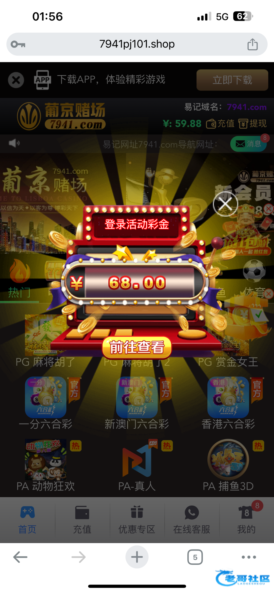 充哥五次10块 领了一次58两次68