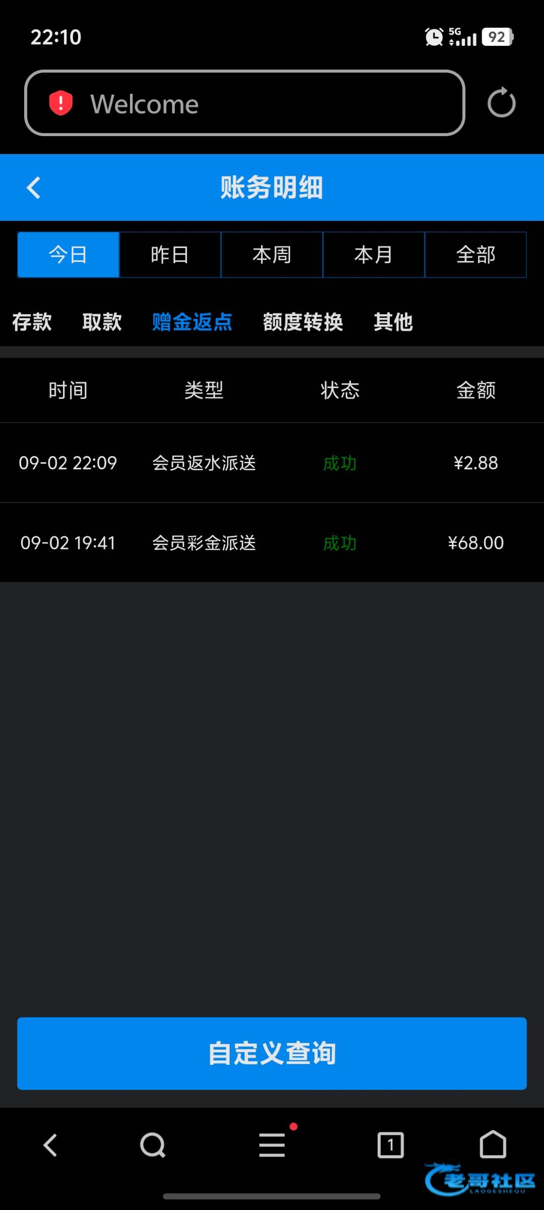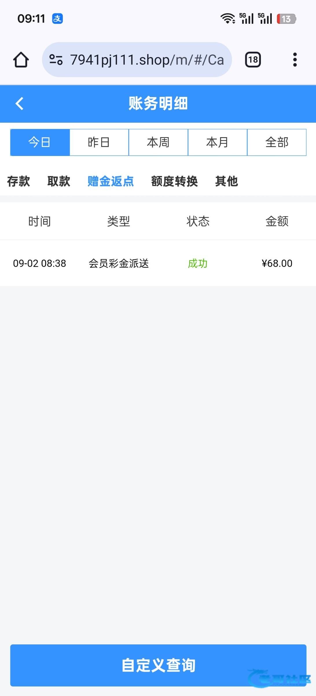 68提款100 存10又提100 感谢