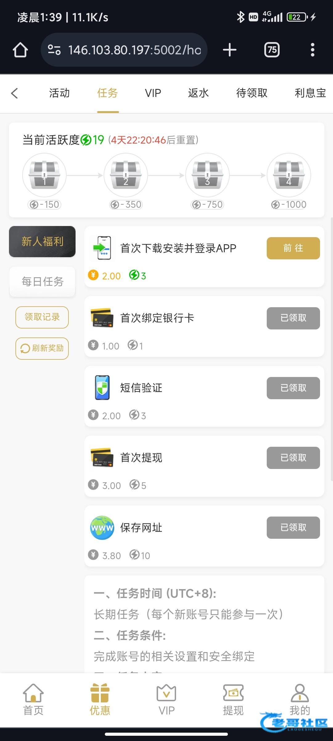 我看有些老哥领了特邀玩不了,或者里面有几块进不去游戏的,这台子最低10才能进,去任务里能领个78块,里面有余额的去