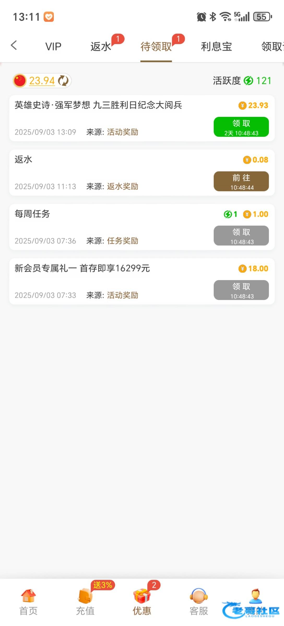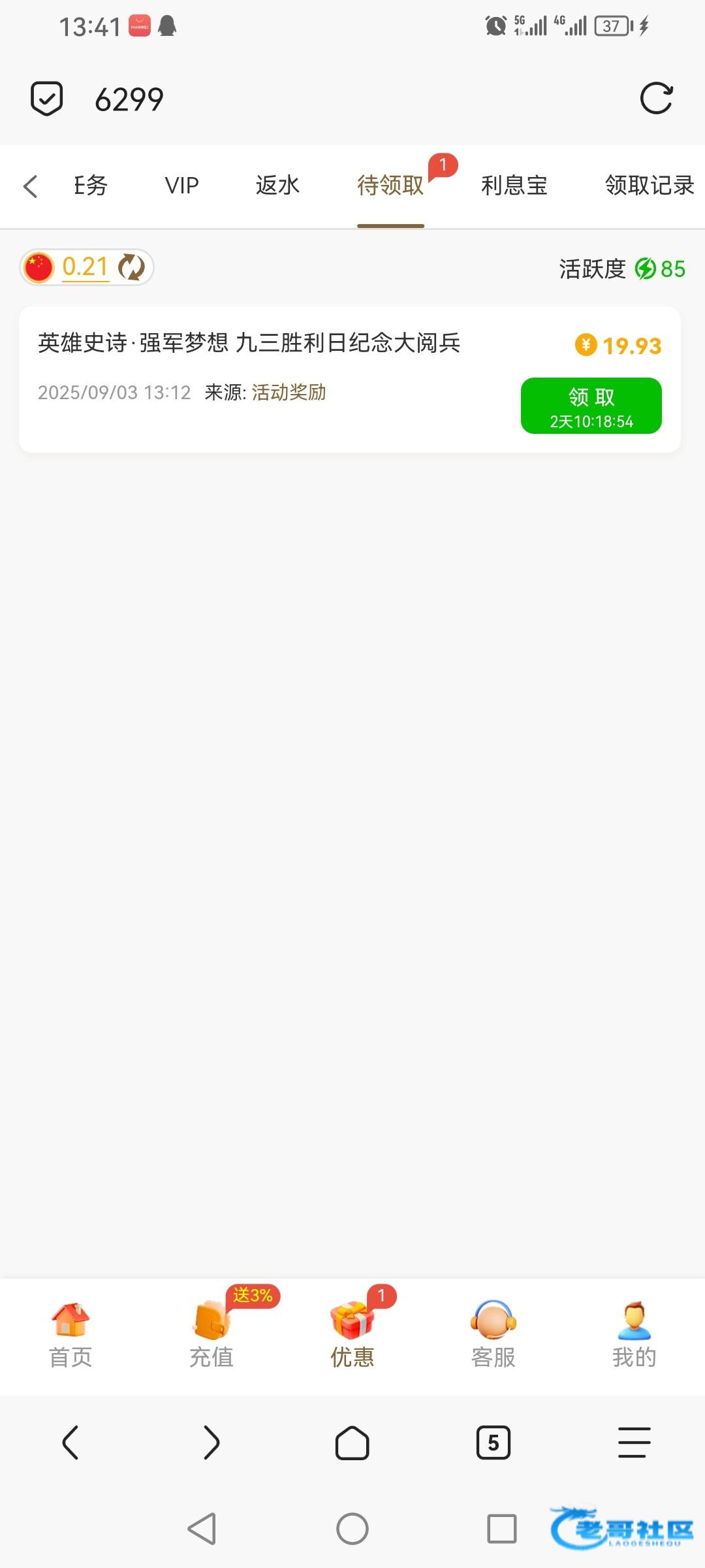 20出400,还可以,虽然没有优惠