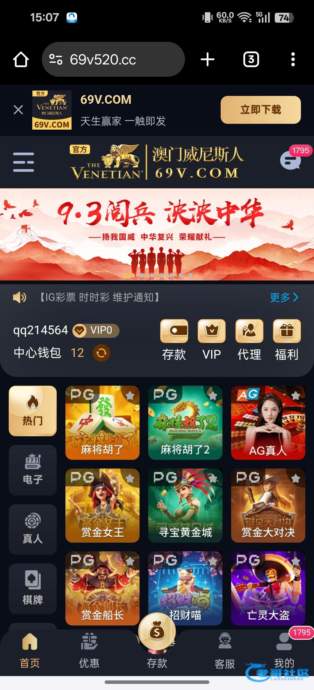 链接69v.com联系客服发账号领取电话彩金即可,我没充值过送了12