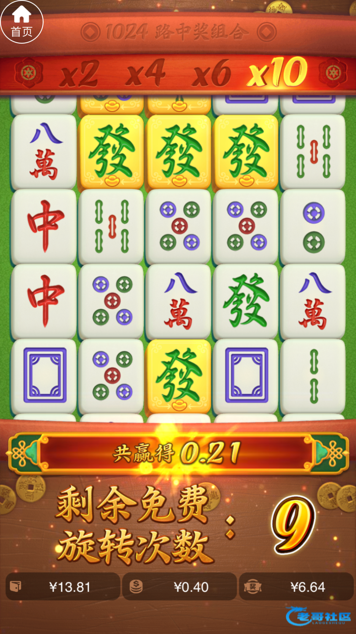 没水的,这个发财下来就牛逼了,10倍发财红中,白板