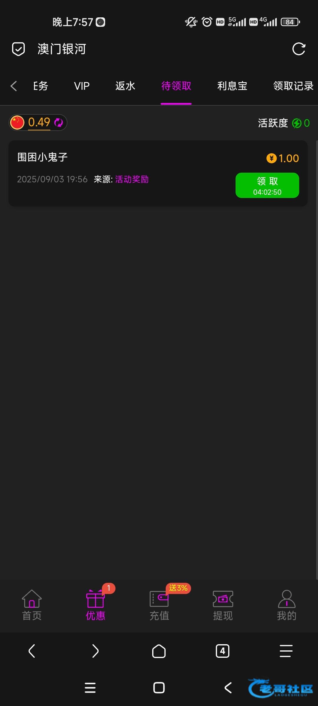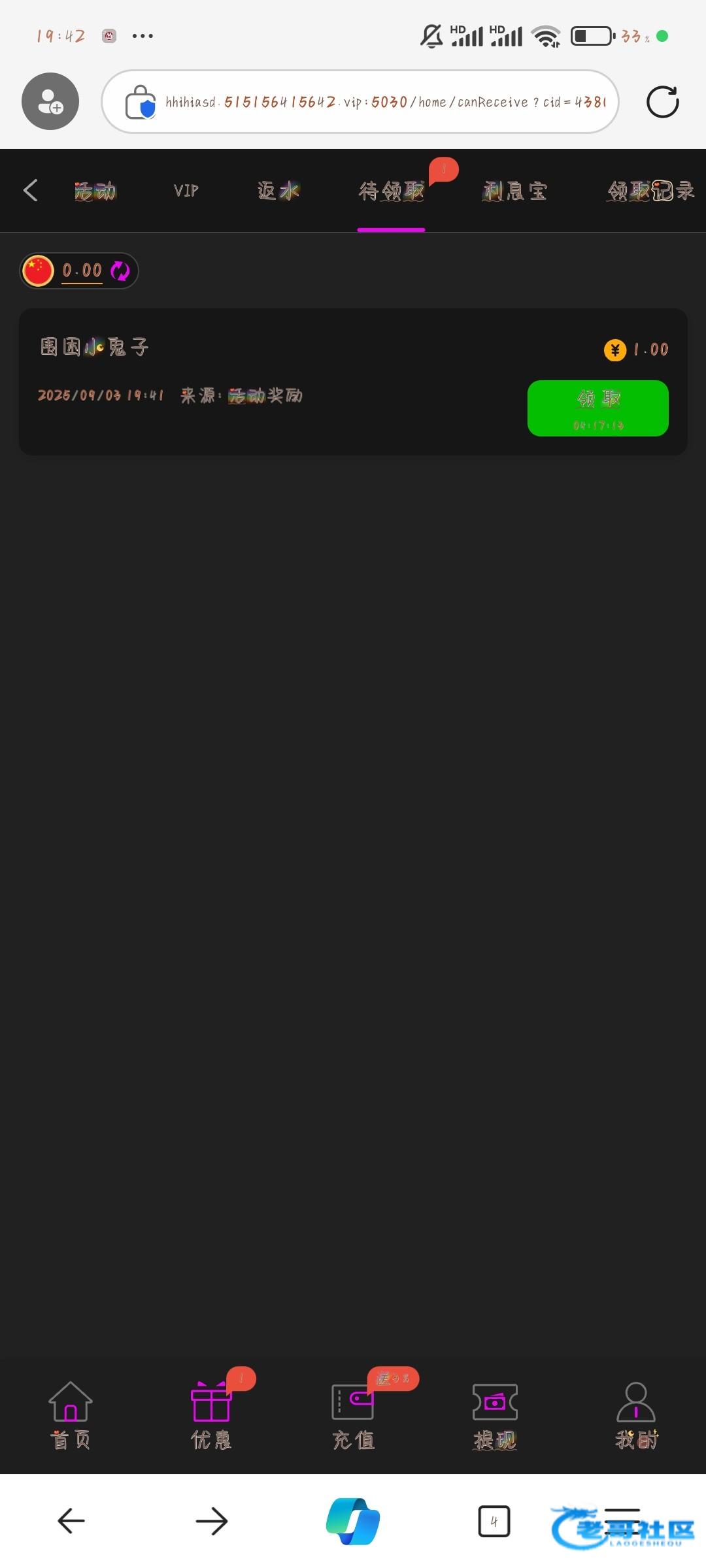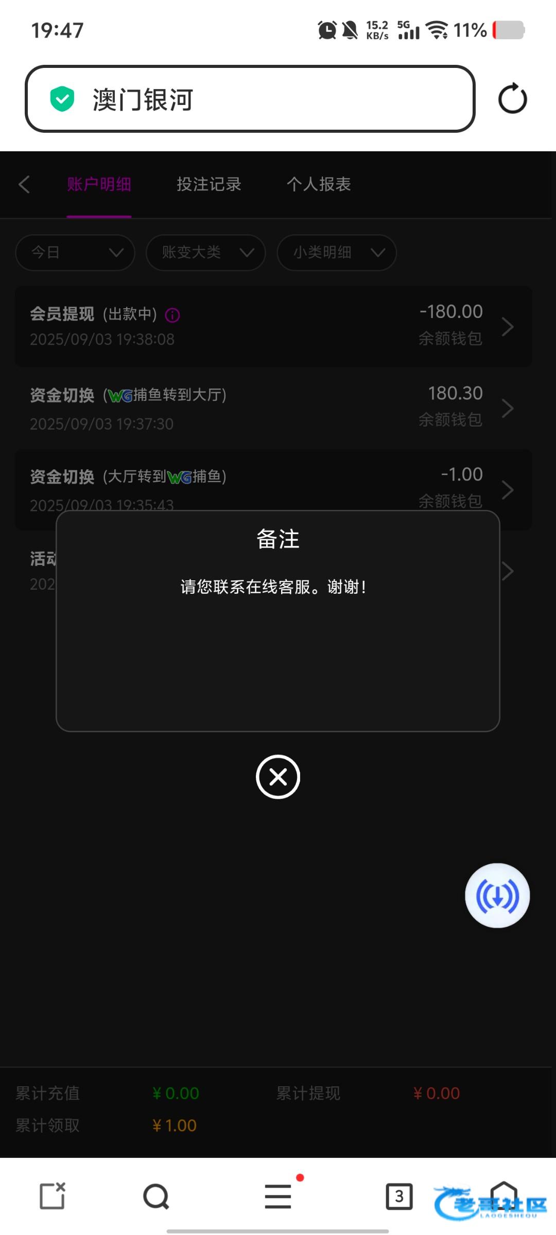 1块钱上180,取款黑了。