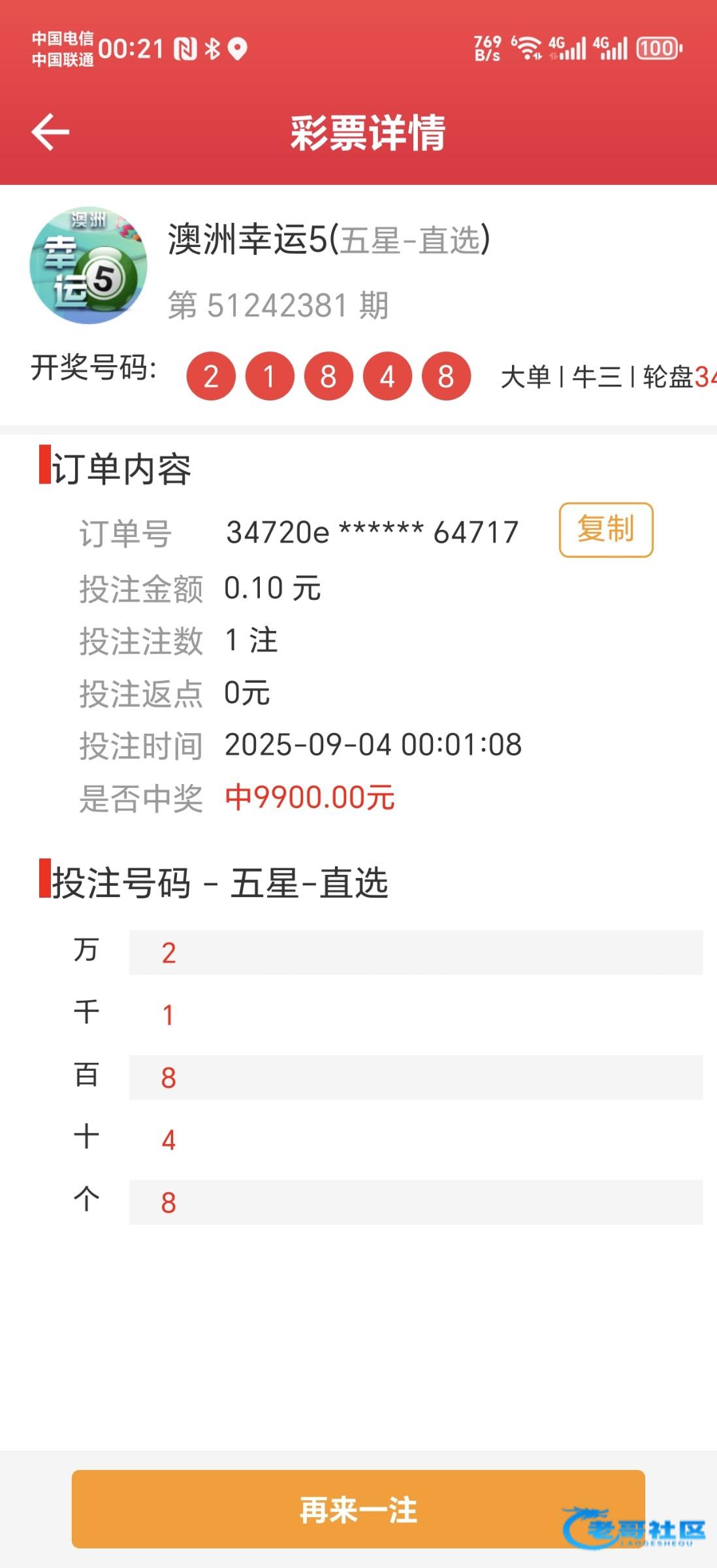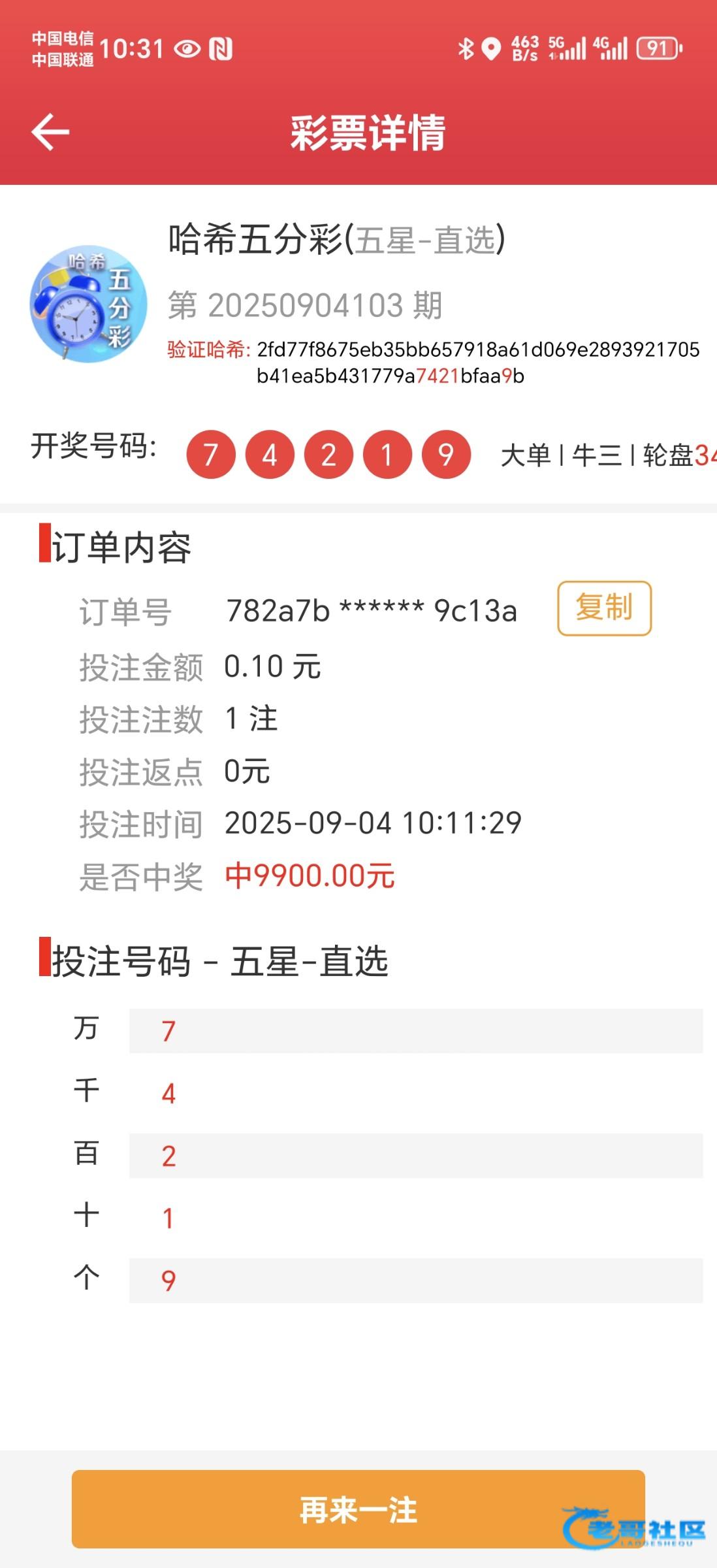 又中一个5星直选,10万倍。快回本了,输了6万,慢慢玩,应该能打回来。稳住