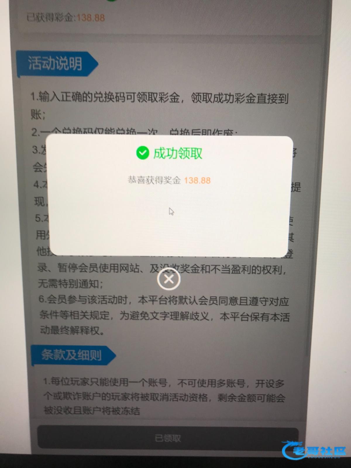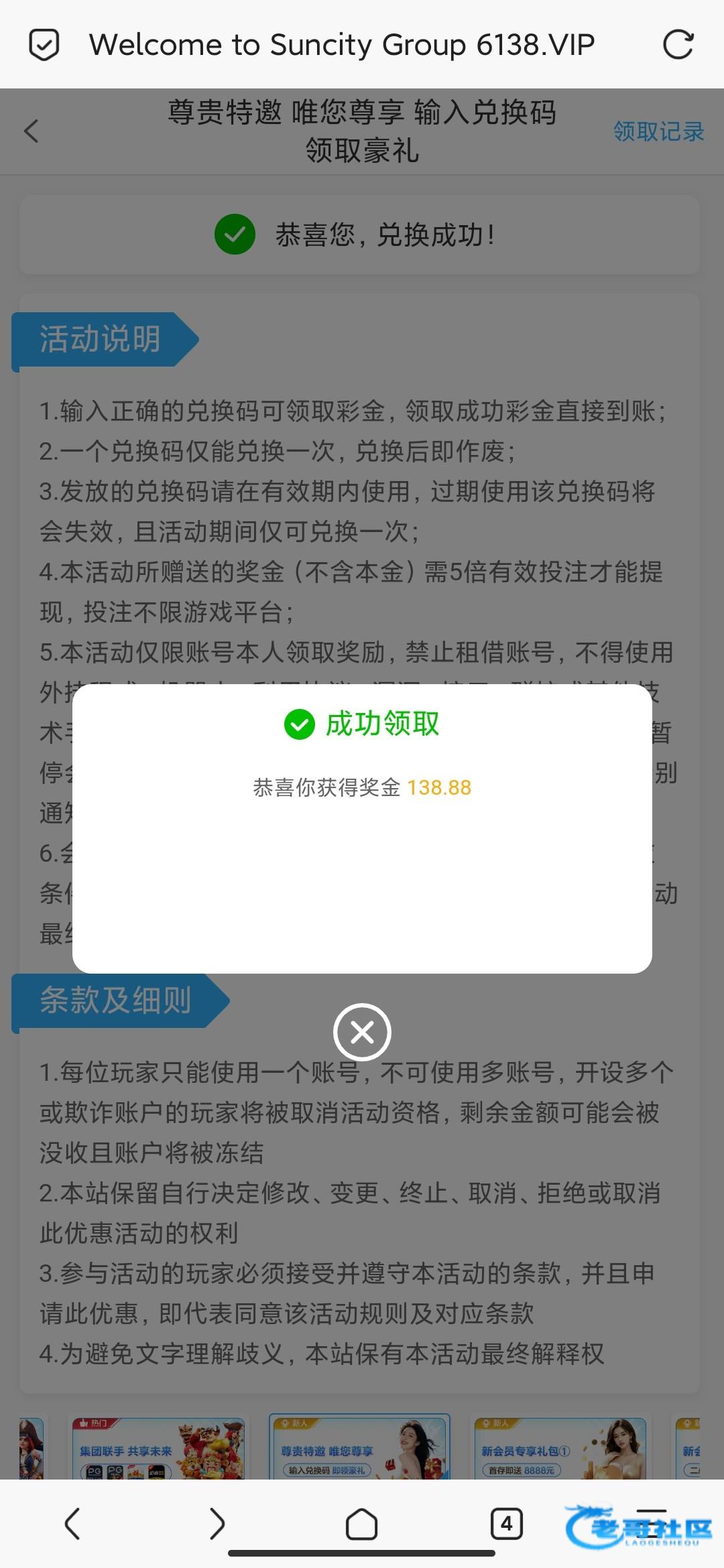 我在这台其它联营的一个台玩了几年V4,刚去申请说要帐号和这台一样,我之前有注册过这台没玩过,客服说要和联营台一样帐号,我就申请了一个发给客服领了138