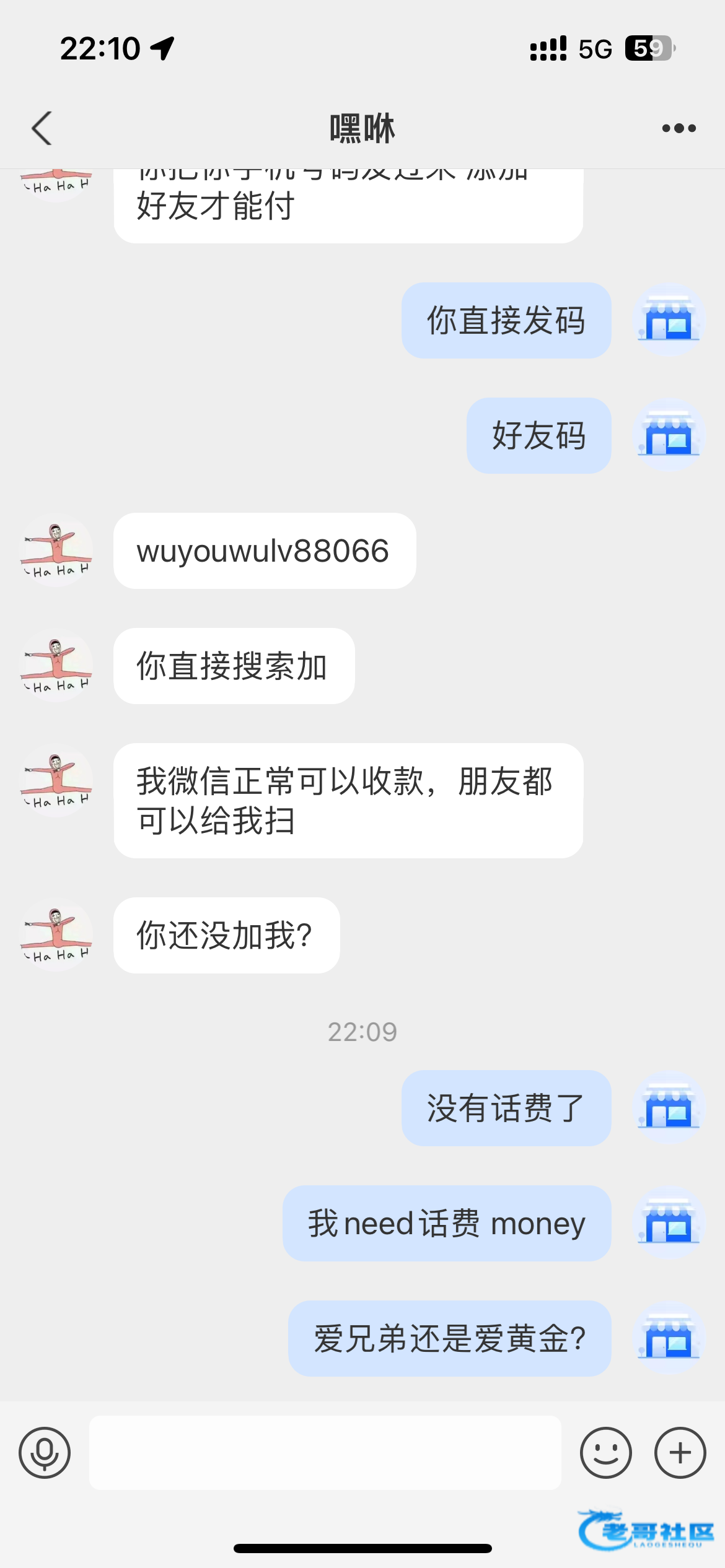 跟他聊天逗他玩还真有意思的 哈哈 微信已经套出来了,老哥们努努力 加上过过嘴瘾!!!