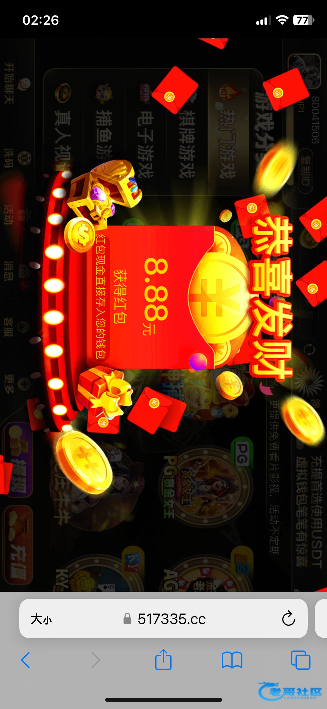 我领取到了8.88 很久没充值了,尽量白嫖,不要充值。网址 517335.cc 00.vg
