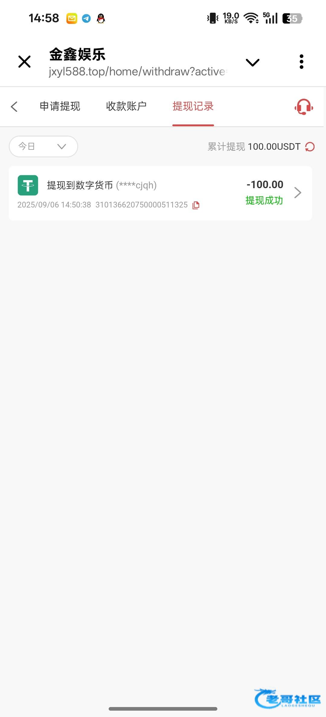 到账了100u
