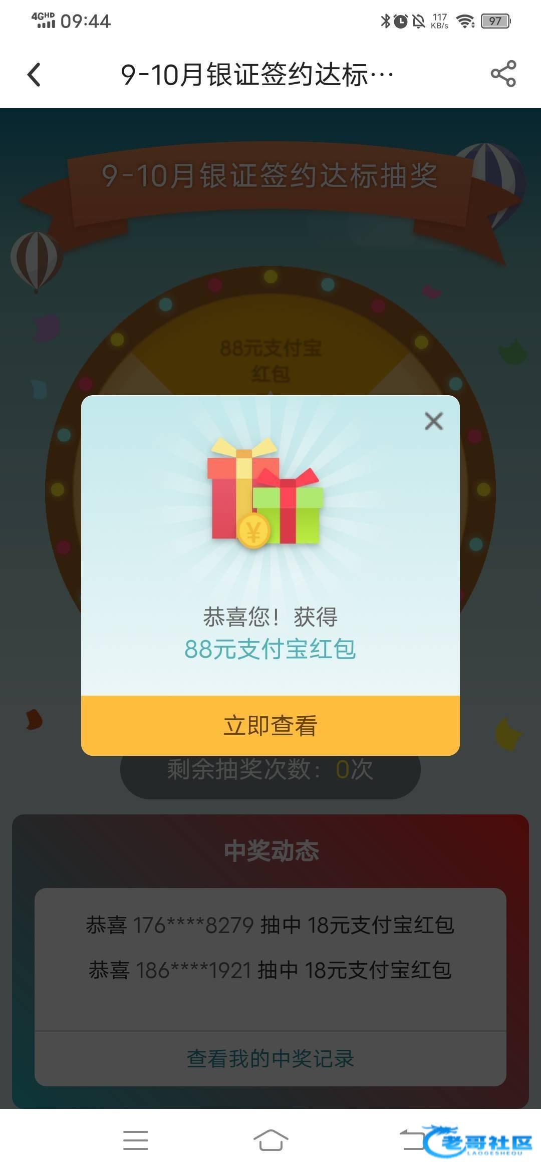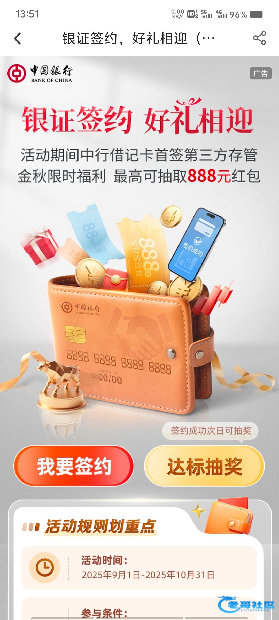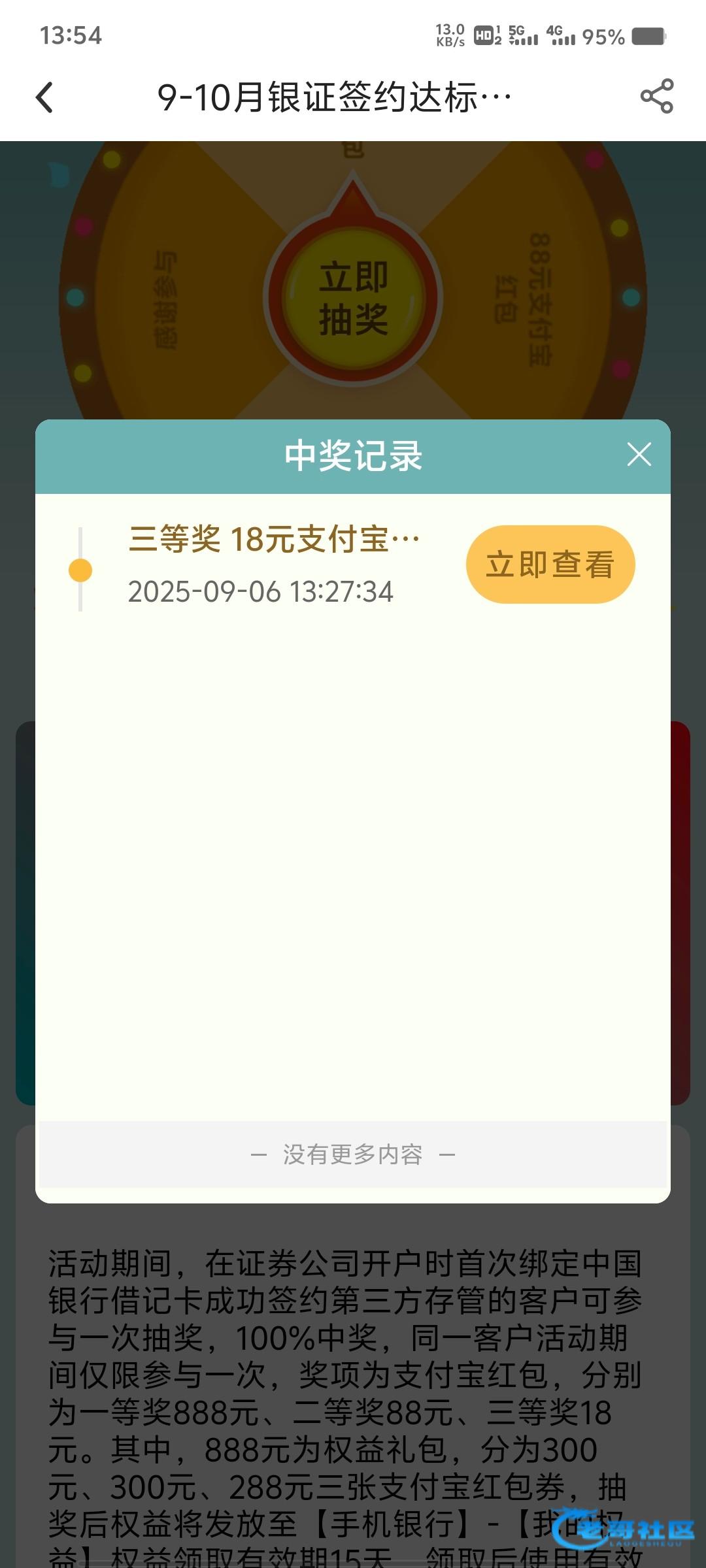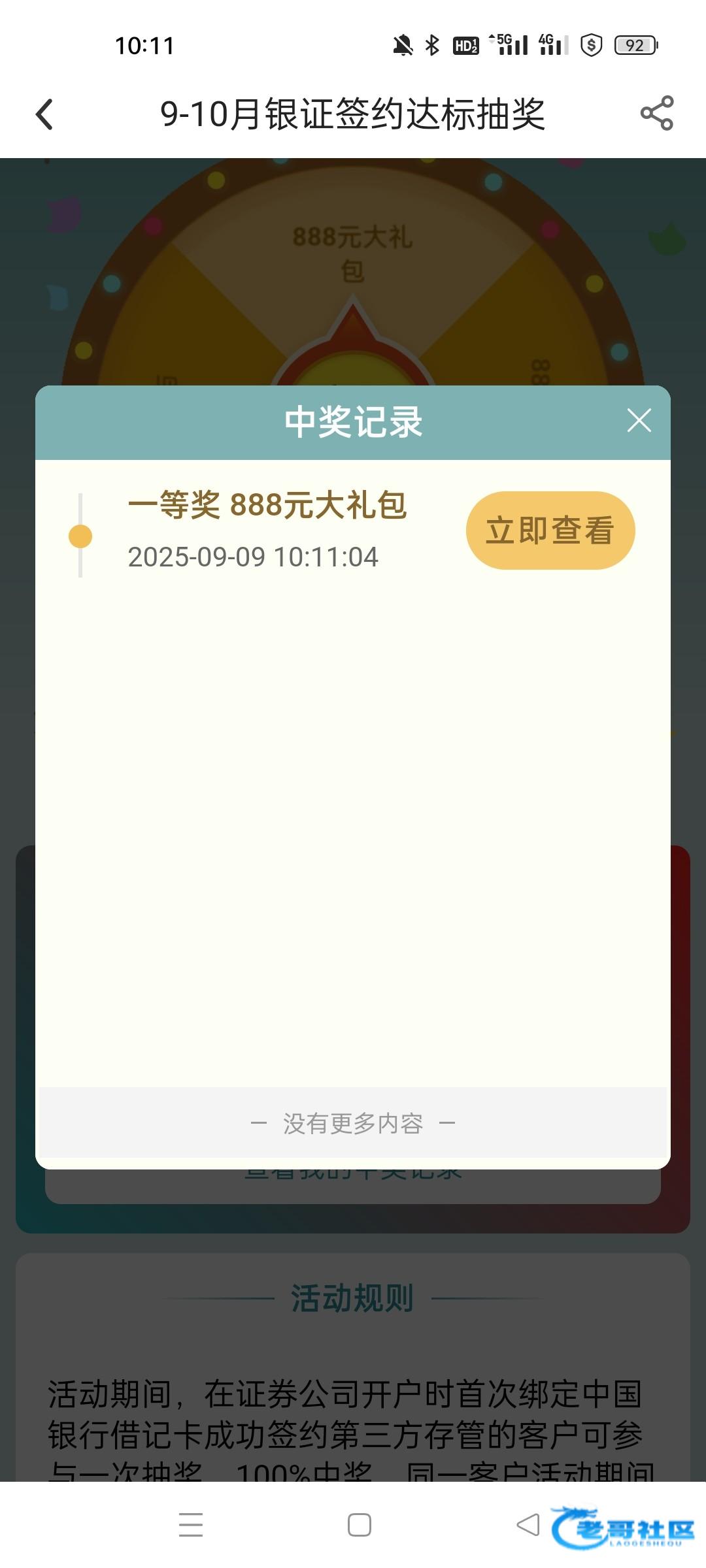 我是甘肃中行二类,昨天湘财证券三方存管换成甘肃中行二类,今天上去直接点完成签约抽奖进去有次数1,抽了个18