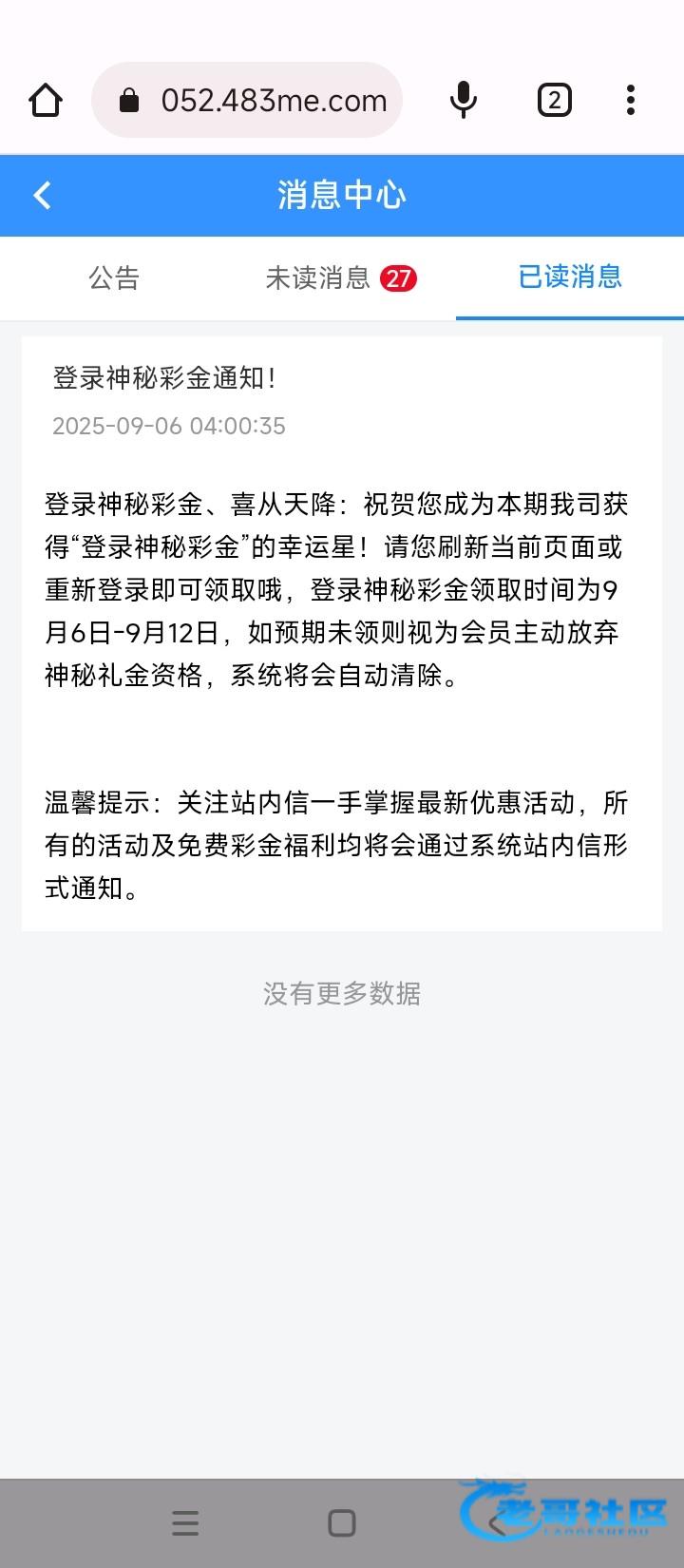 收到站内信神秘彩金的 登录就有38彩金 胡1没水挂逼483.com