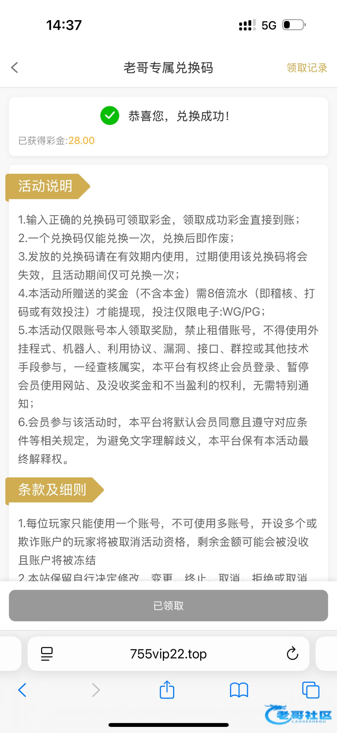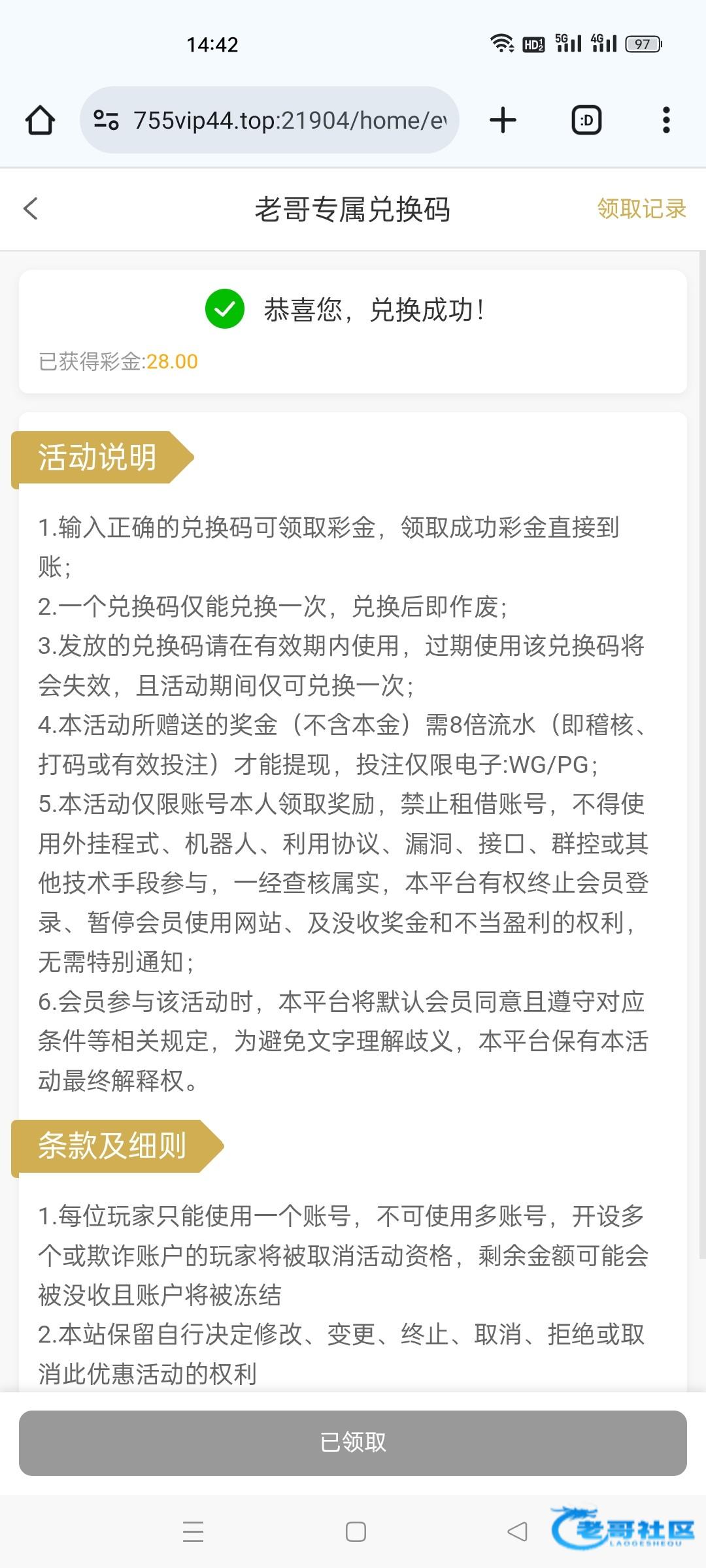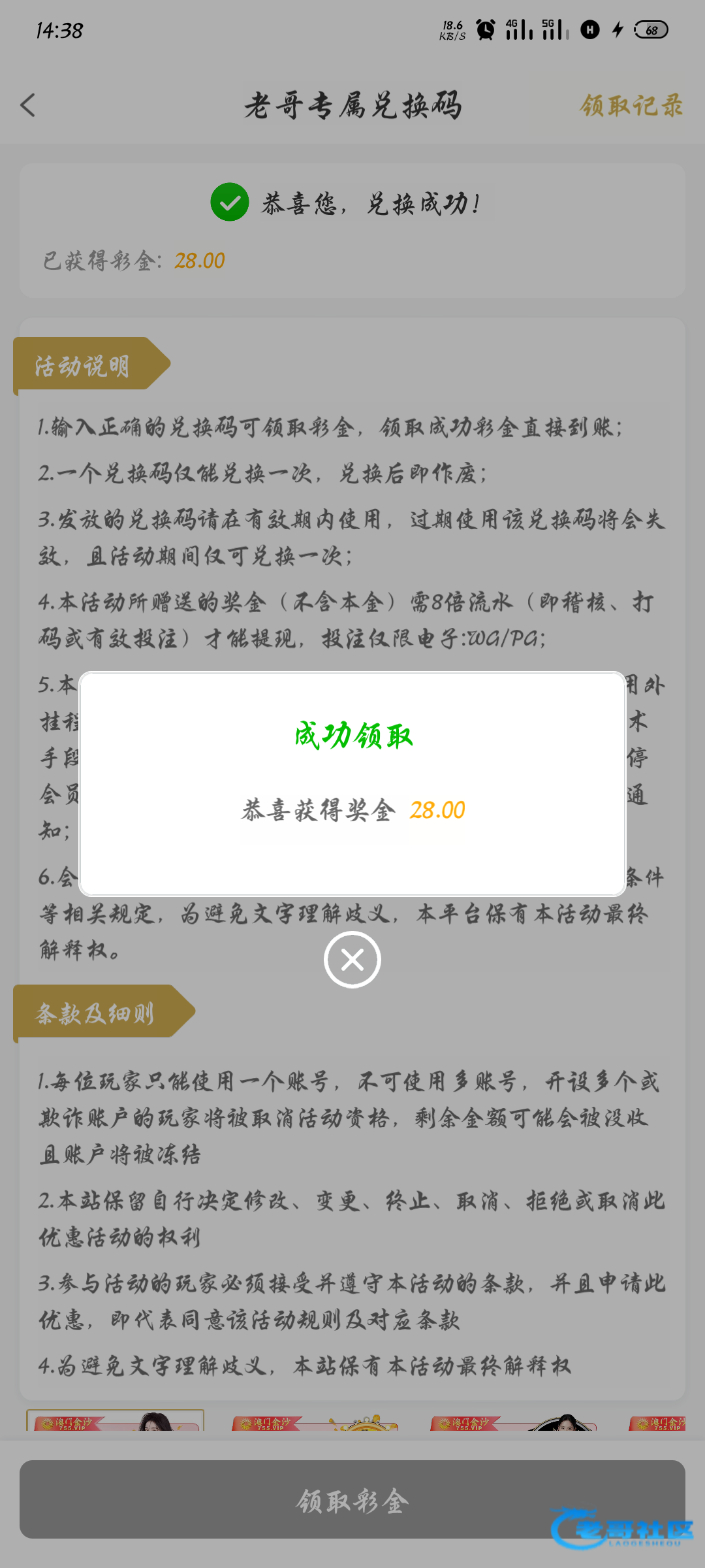 领到了谢谢老哥