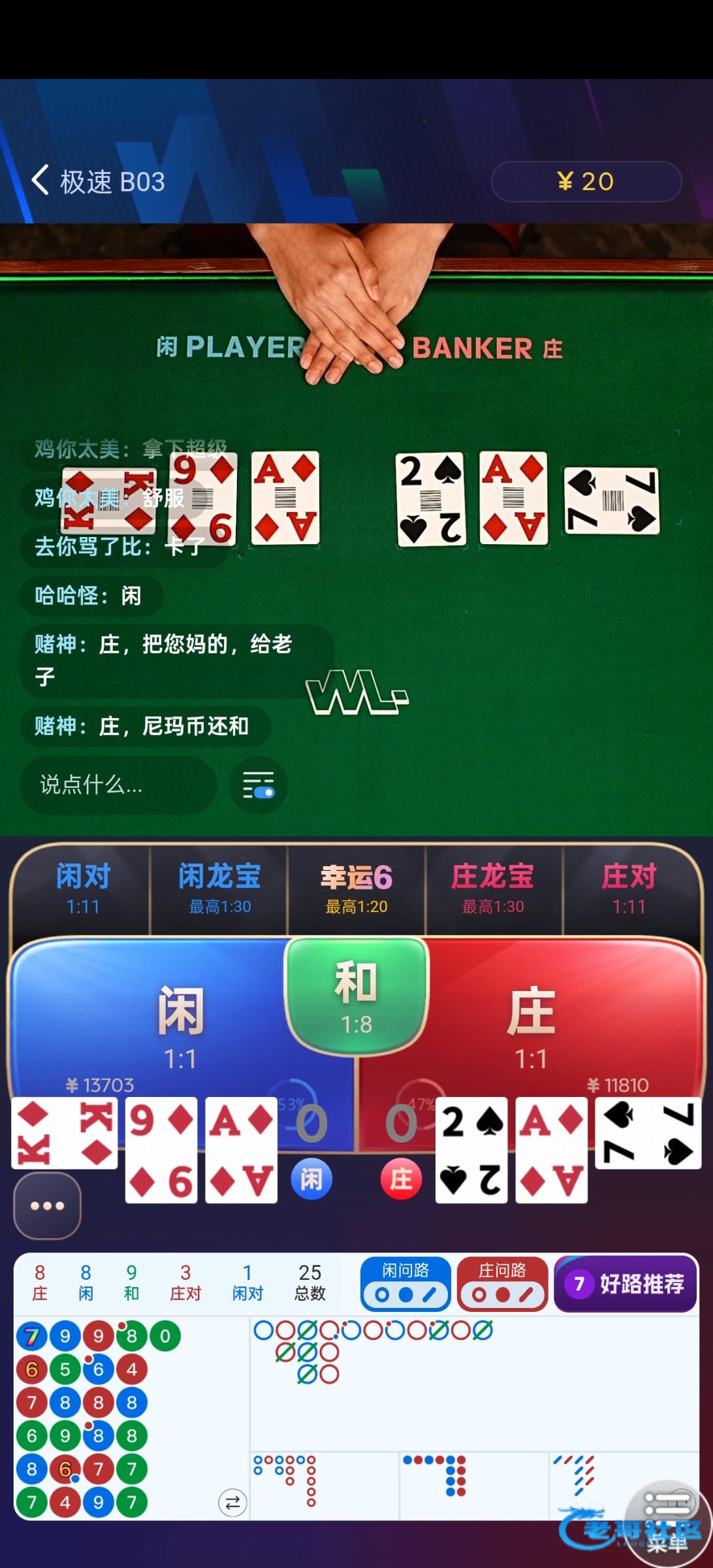我个人觉得有鬼,但绝对不会是针对个人的,应该是那种整体杀大赔小,百家这玩意在不考虑黑台子的前提下,是个概率学问题,你再牛逼能牛逼过历史书上那些数学家,就算你真牛逼把概率学算明白了,你能克制自己不赢红眼或者输急眼?论坛老哥也有几百上几万的,最后的结局不也是输回去,百家乐这玩意在不考虑黑台子的前提下,就算狗庄正常抽水都能赚的盆满钵满
