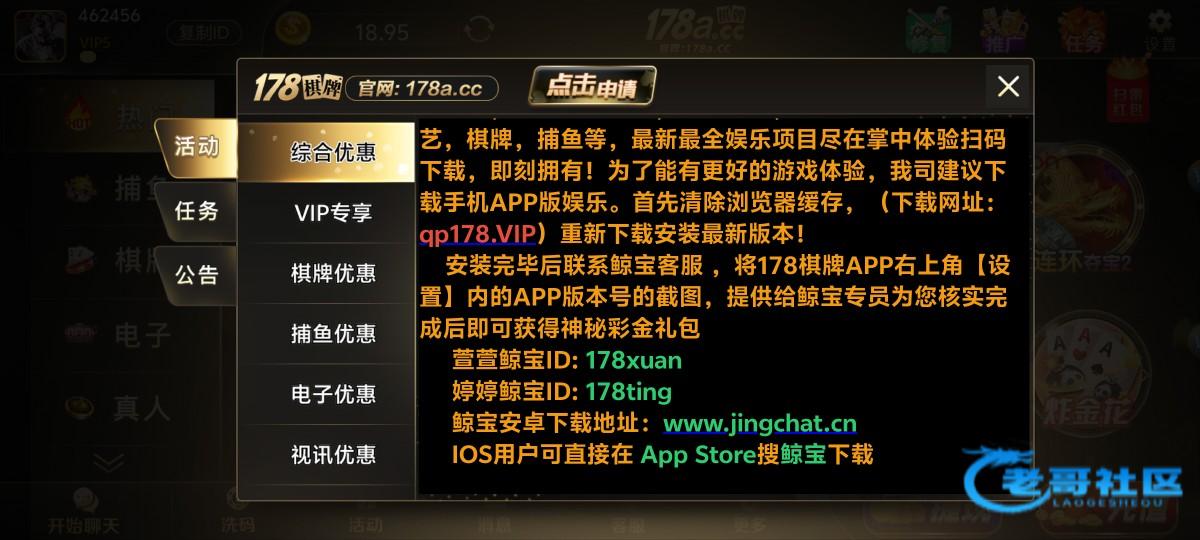 下载鲸宝,邀请码8888,截图178棋牌app设置里面版本号发给客服,我领了18