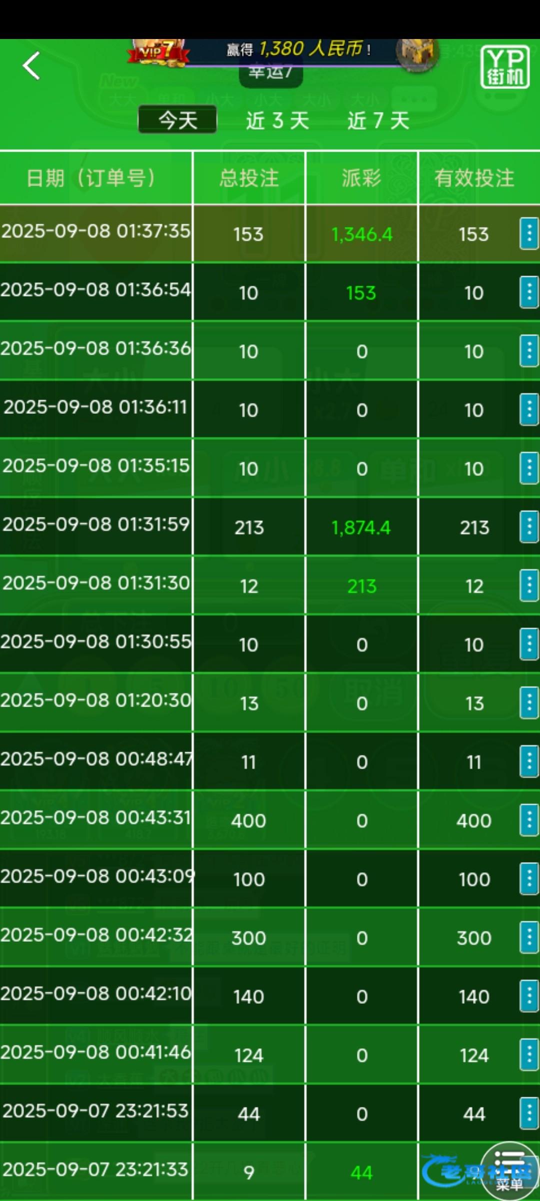 昨天充了80玩了一个晚上幸运7赢了6000。今天想赢更多上头几百几百的下。一个小时就没了4000。最后冷静了一下,想着冲500我10块钱慢慢过关玩。没想到真给我成了