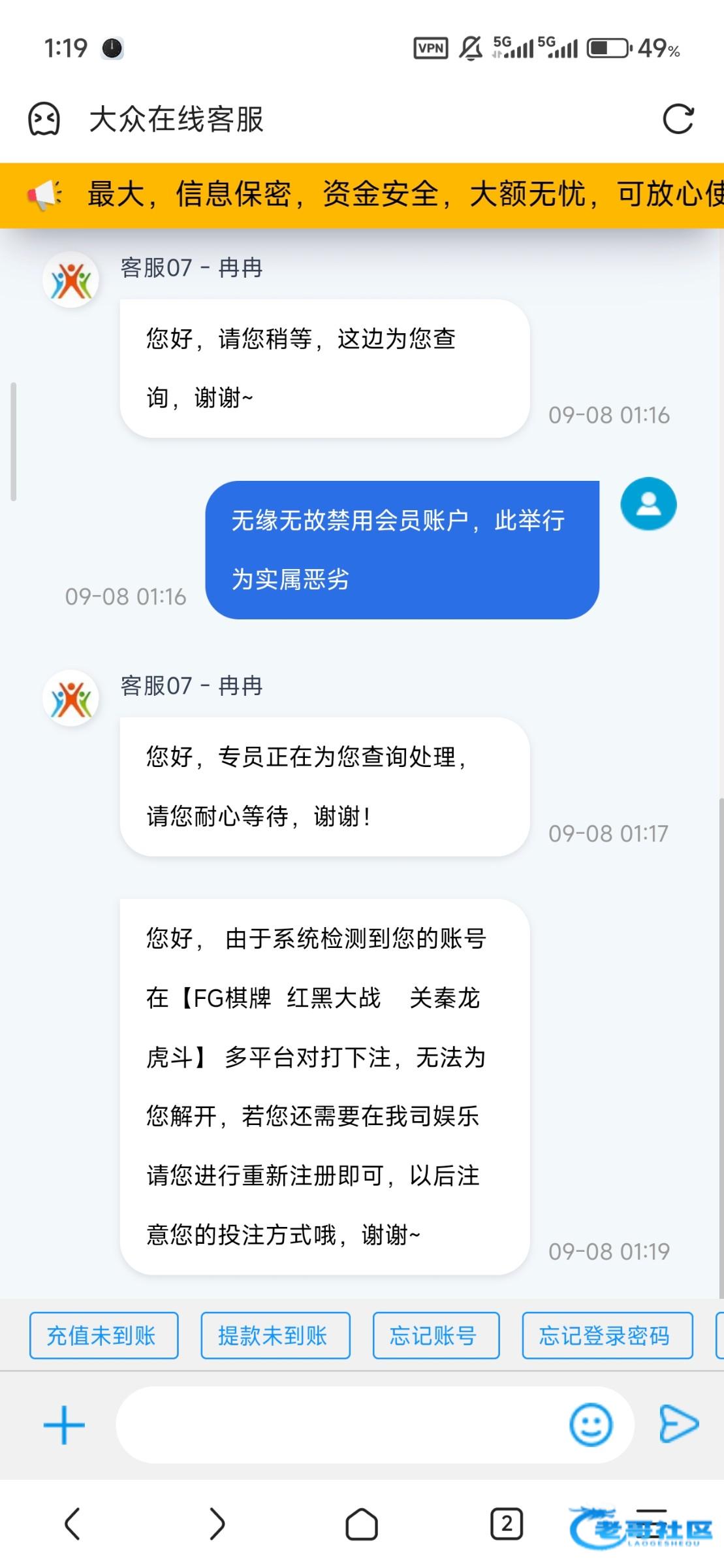 狗庄技术已经这么厉害了,两个账号对打的还是棋牌百家乐都能被查到,我还想着套平台的红包,返水和笔笔存款回馈呢,这些账号都封了。