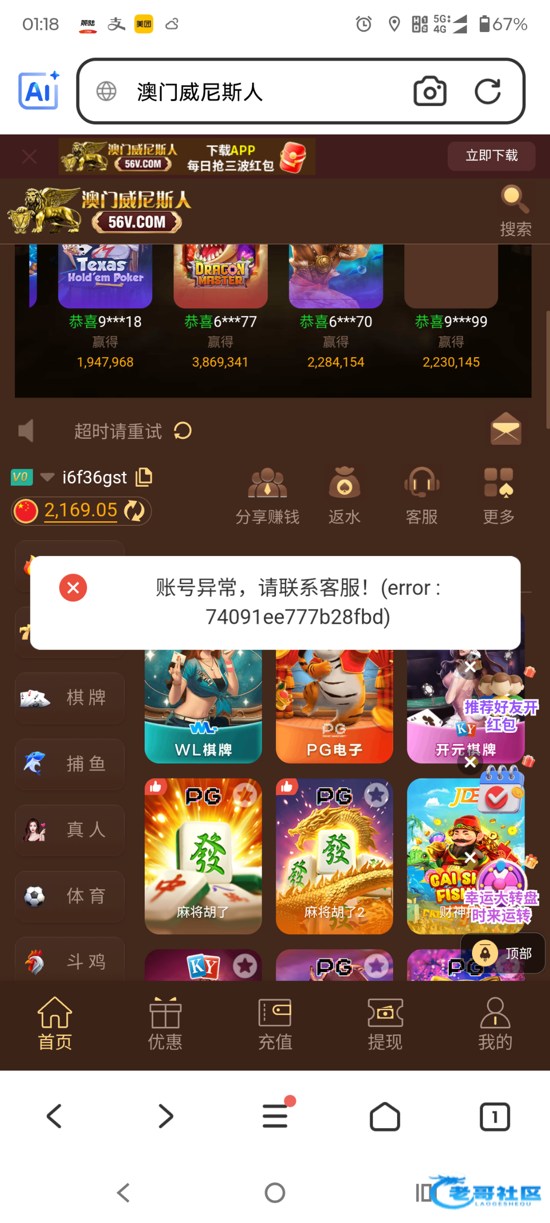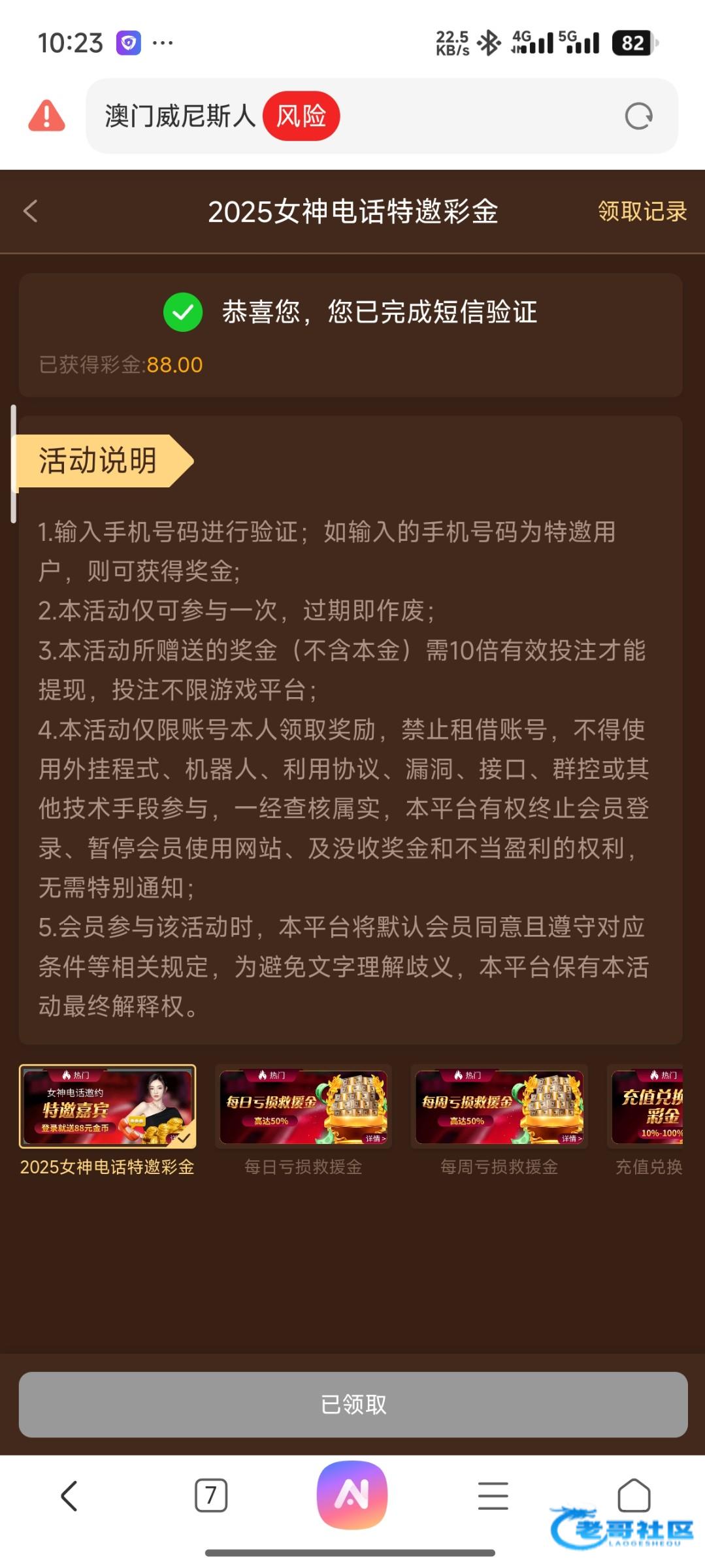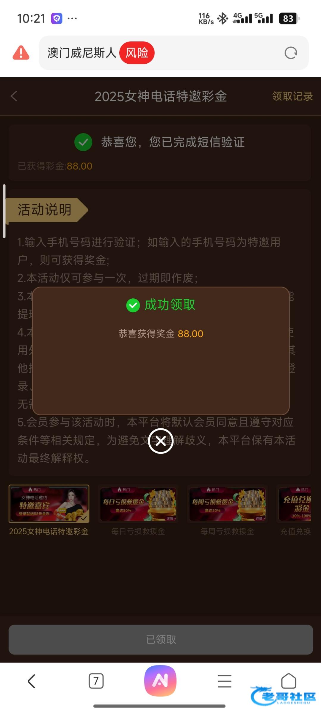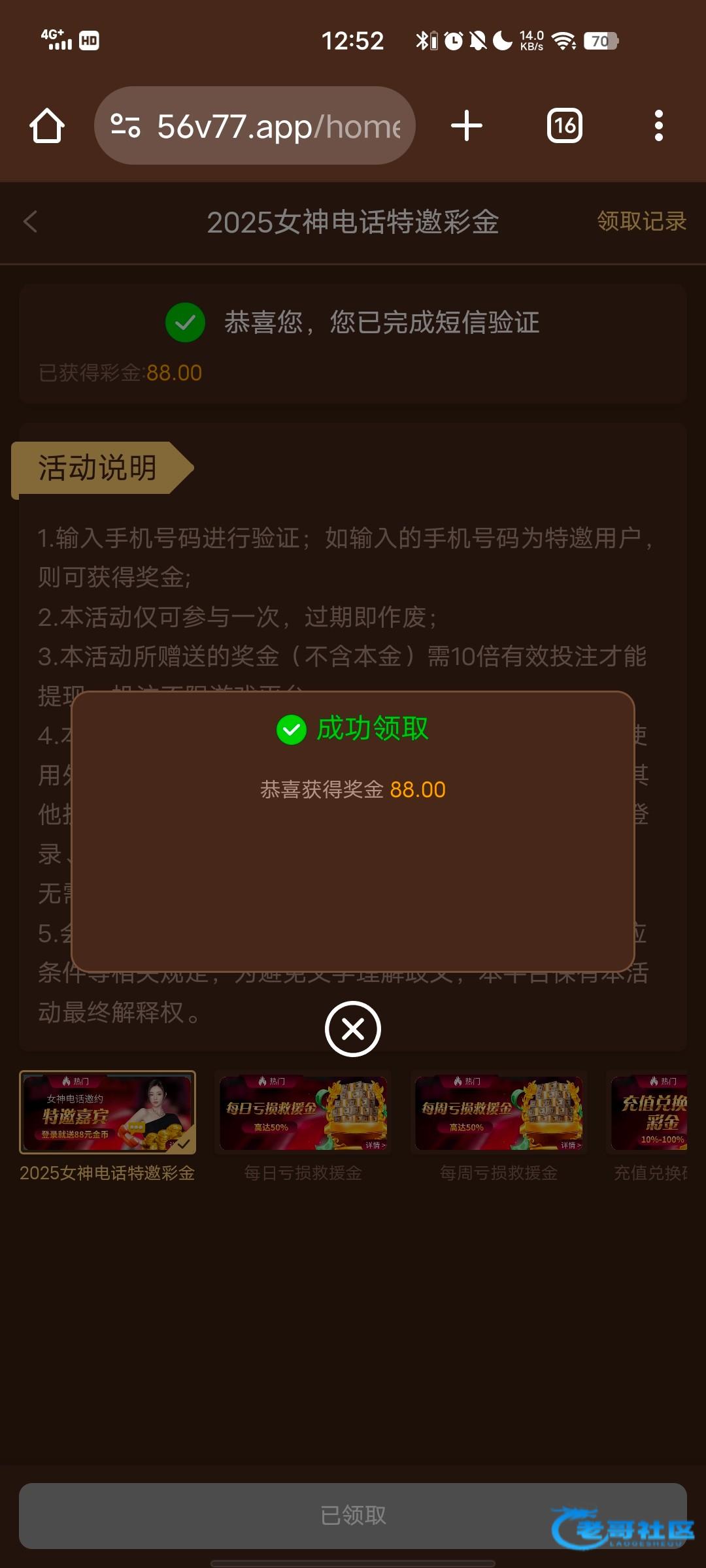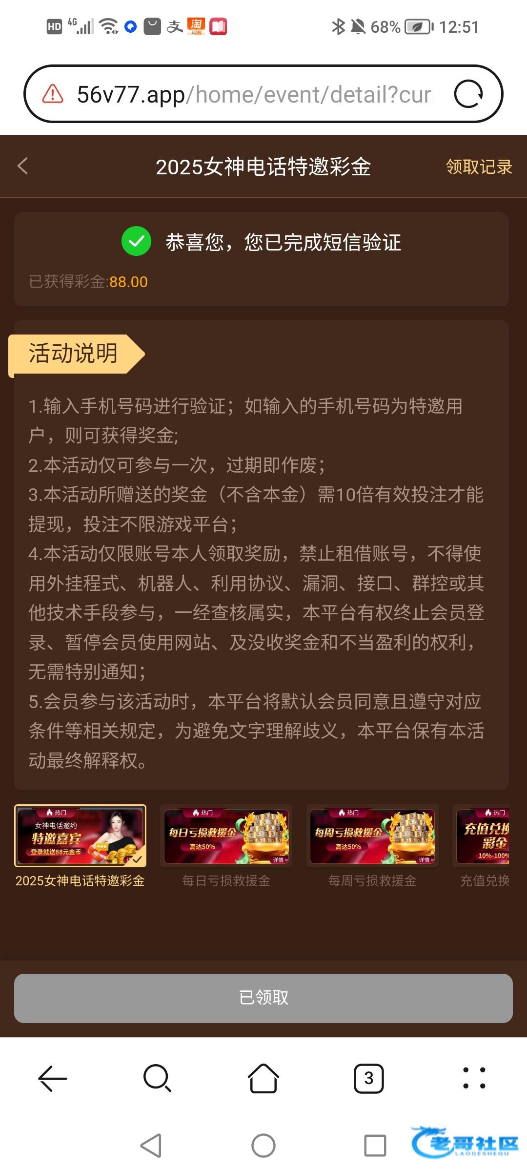 之前老哥们发的时候去碰,结果不是特邀,今天看群里老哥碰到了又去了一次,领了88网站56V.com