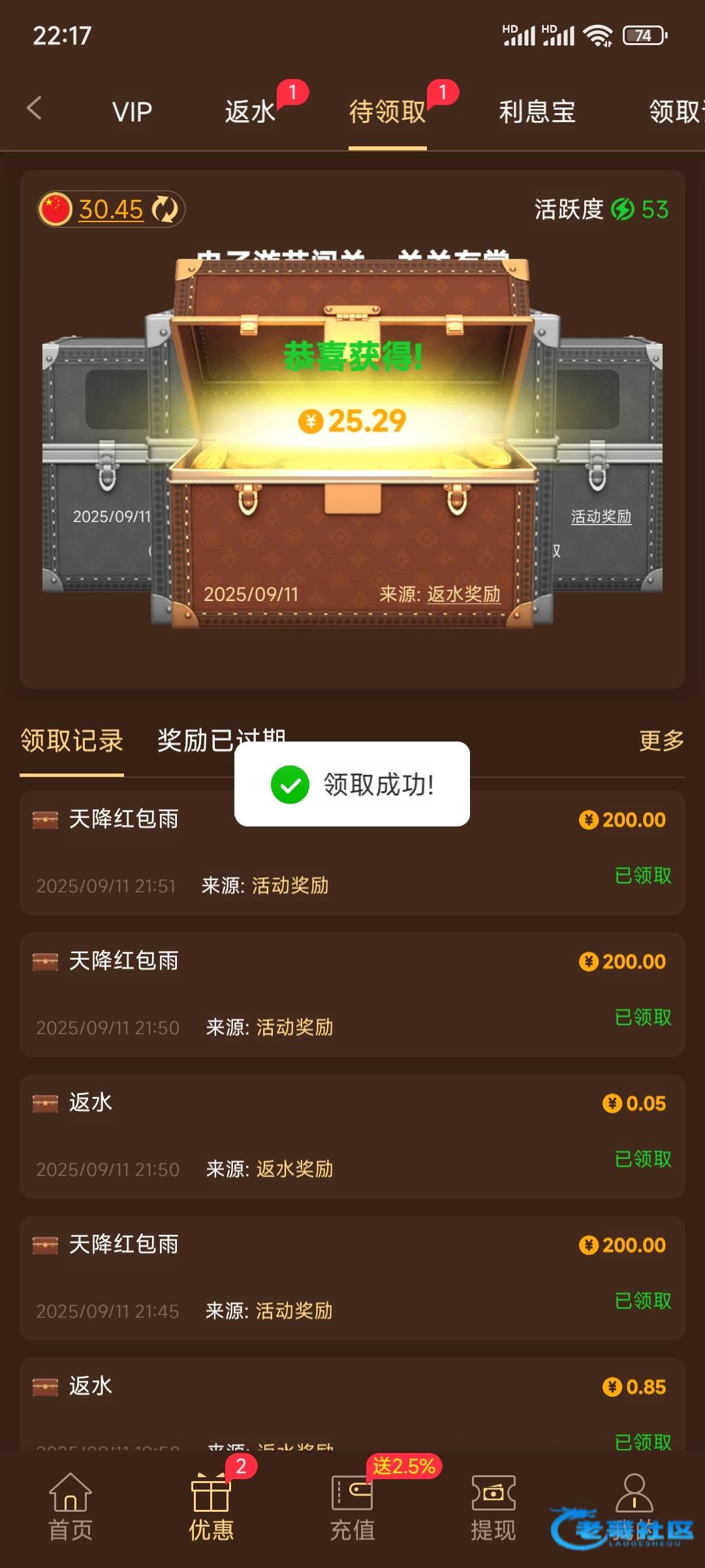 领到了看你们都是还要充值就随便打打输了