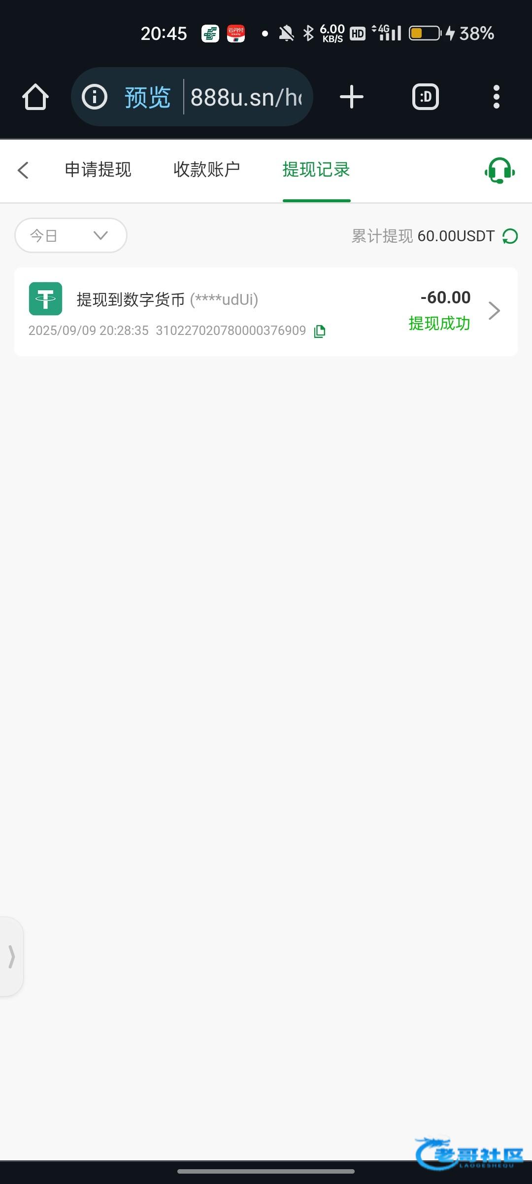 到账60u
