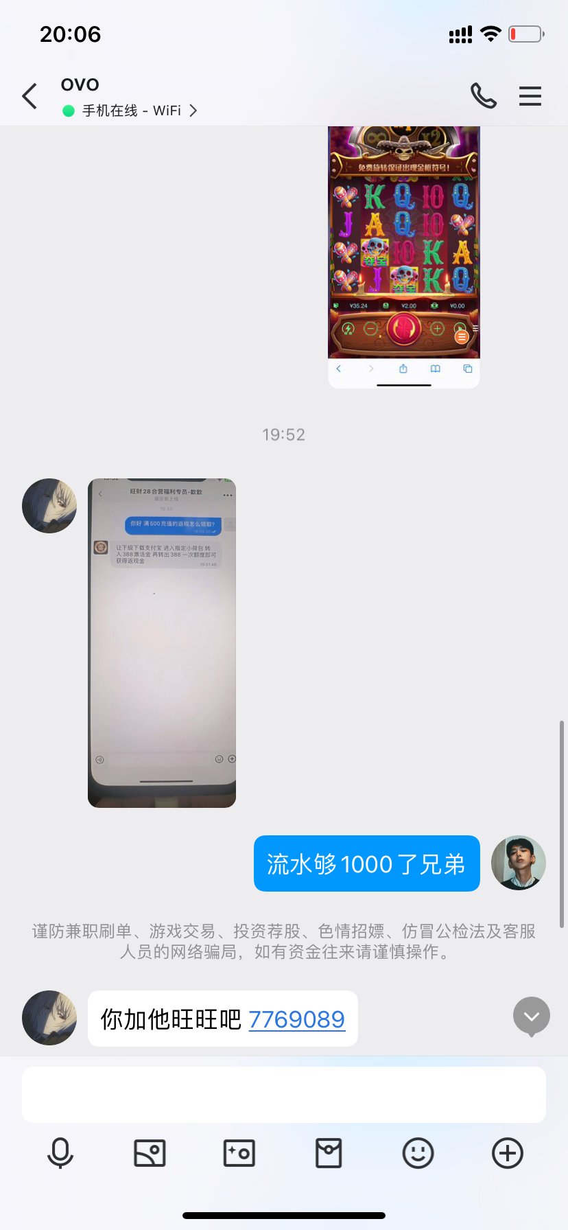 我也不知道为啥,500块钱一次免费都不出,上级说充值500返288口令红包,结果让我找别人领,人家官方客服都说没有这个人了,差点又损失388,有图有真相,现在不理人了,麻烦老哥快审避免有人中招