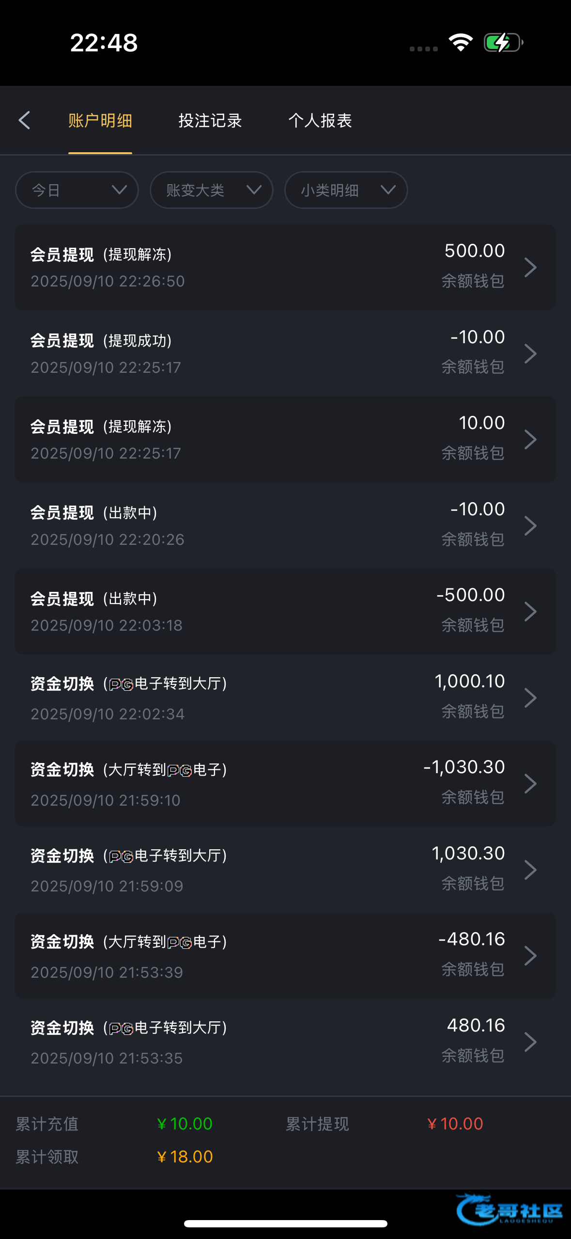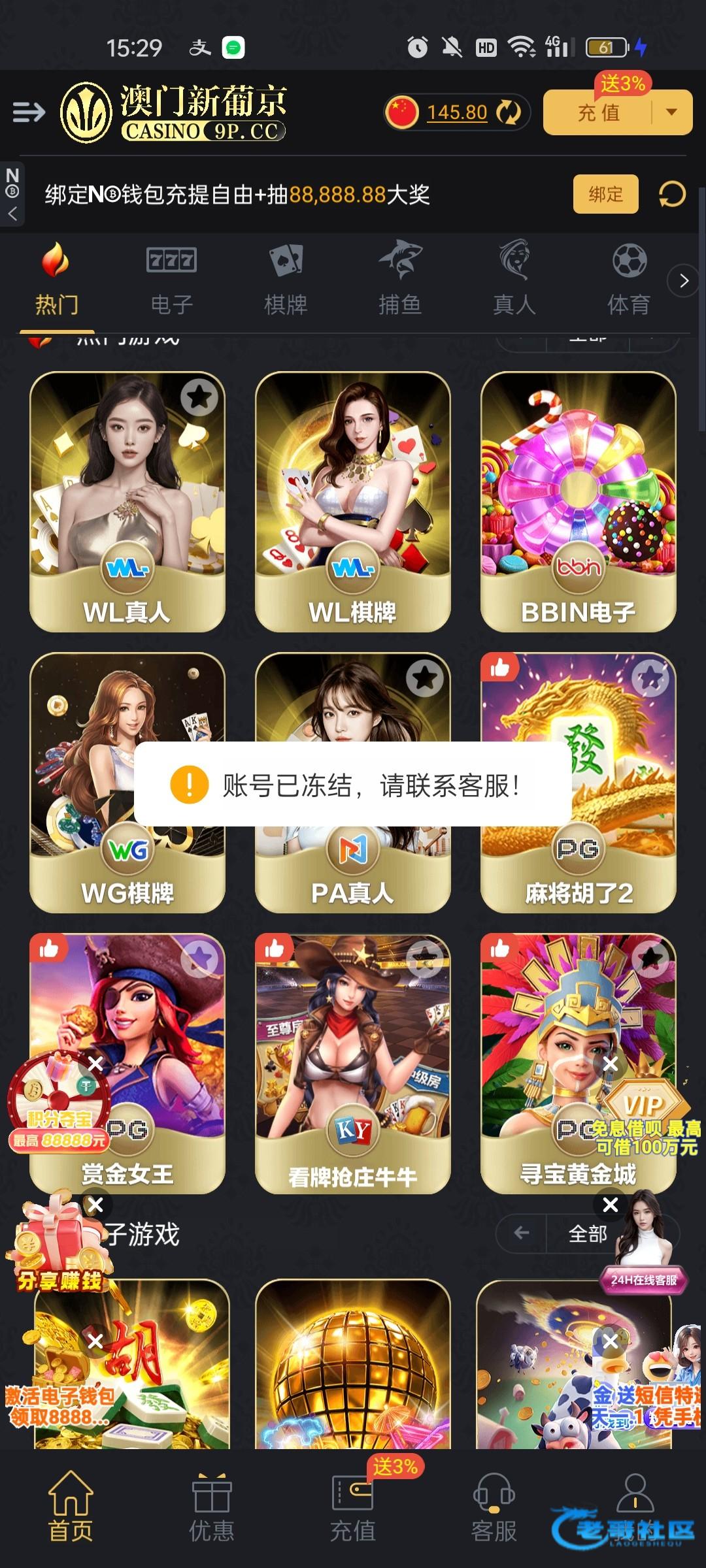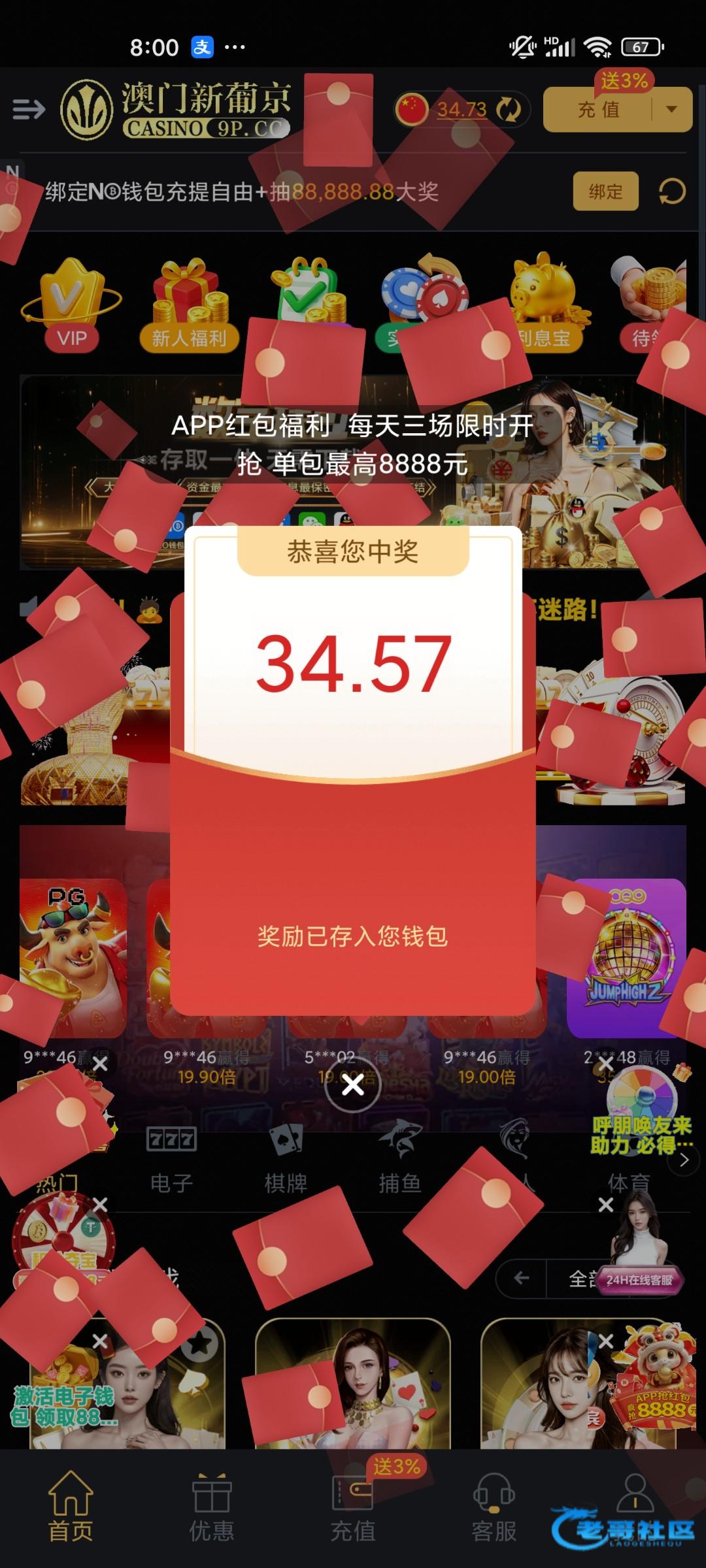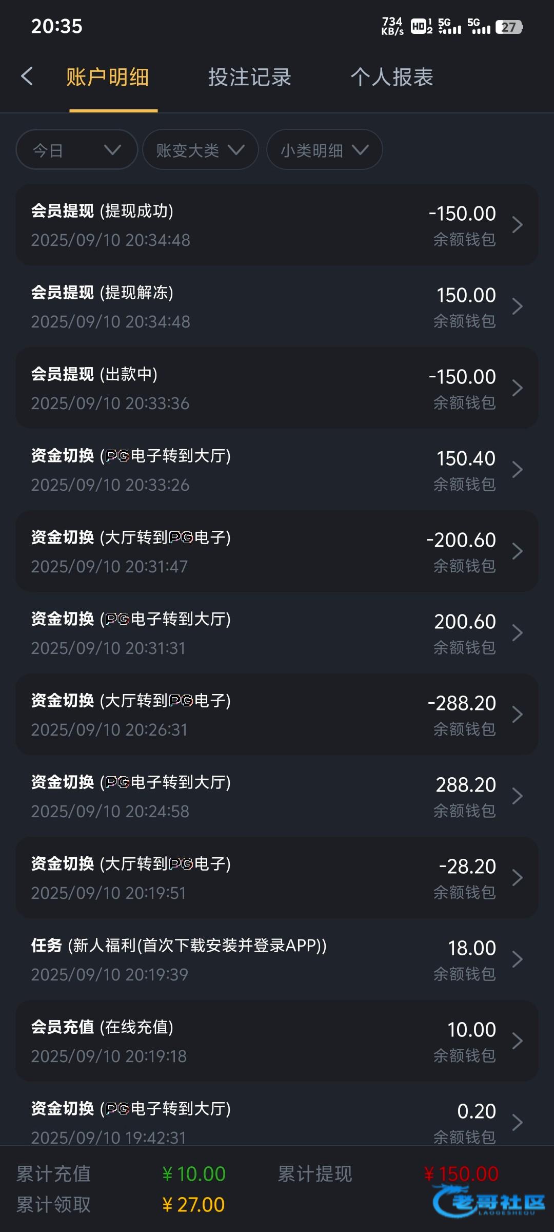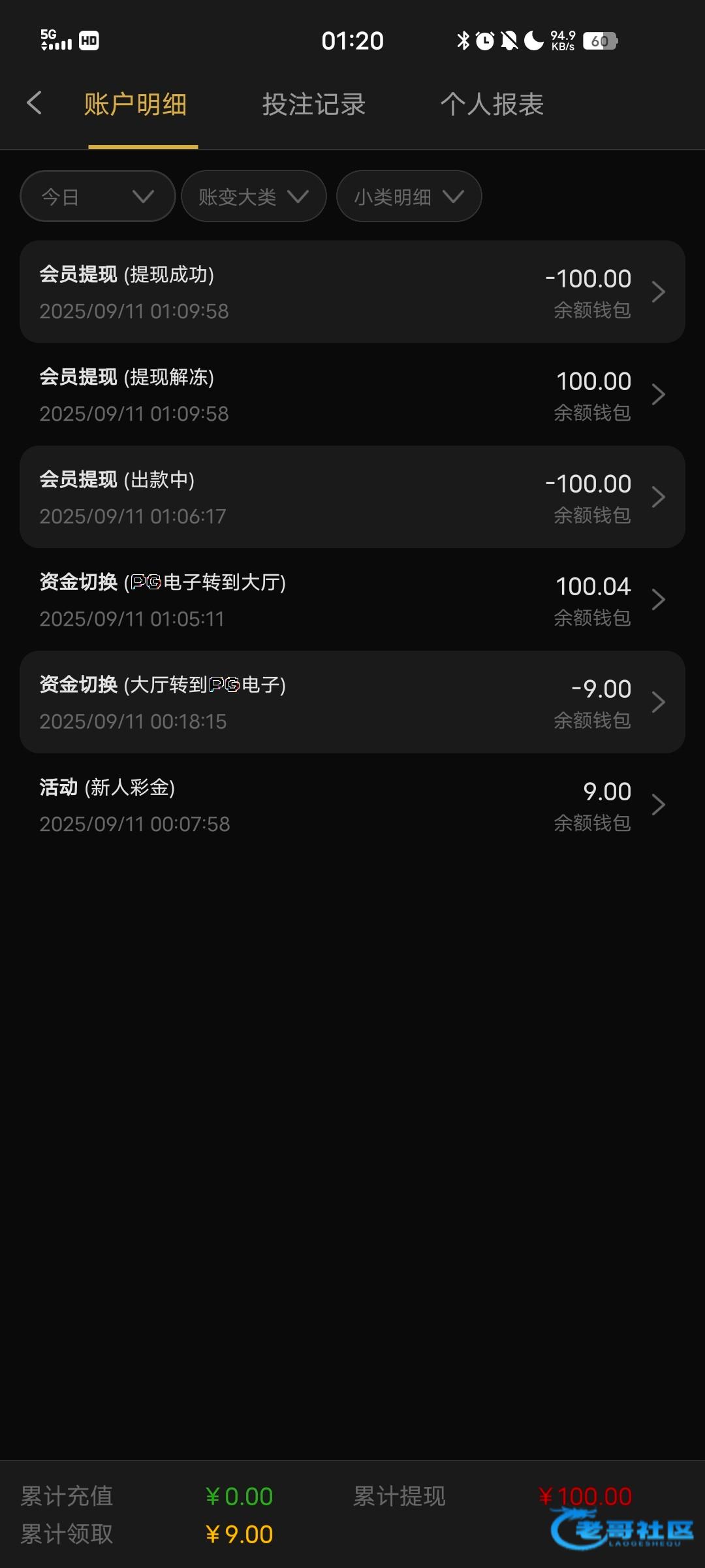 上个月领过了,提了100,然后又充进去60,玩pg水花都没溅一下,刷了几百流水一次免费没见过,前两天领了十几块签到彩金玩体育,今天提了103,白嫖就行了,别充值。