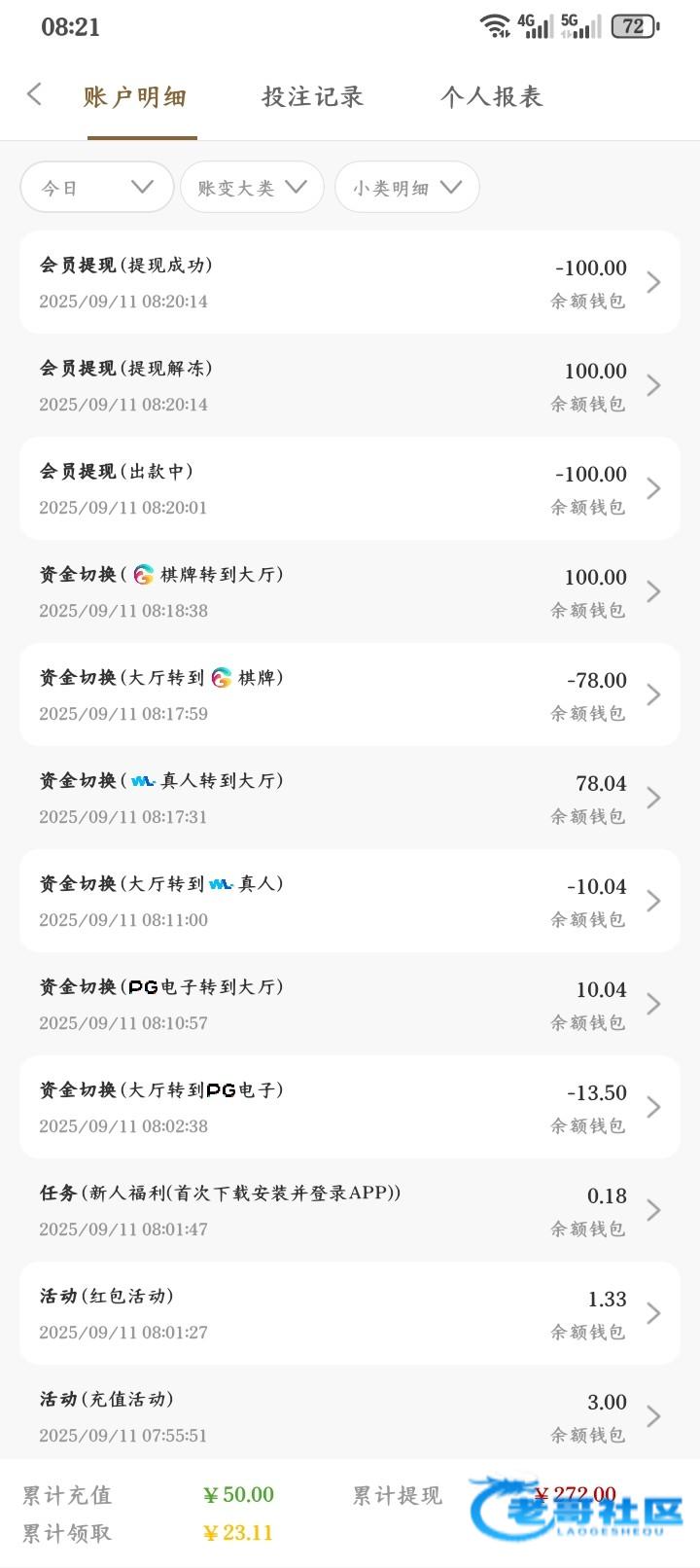 打到100,提现要充50打完流水秒出了,小吃一点