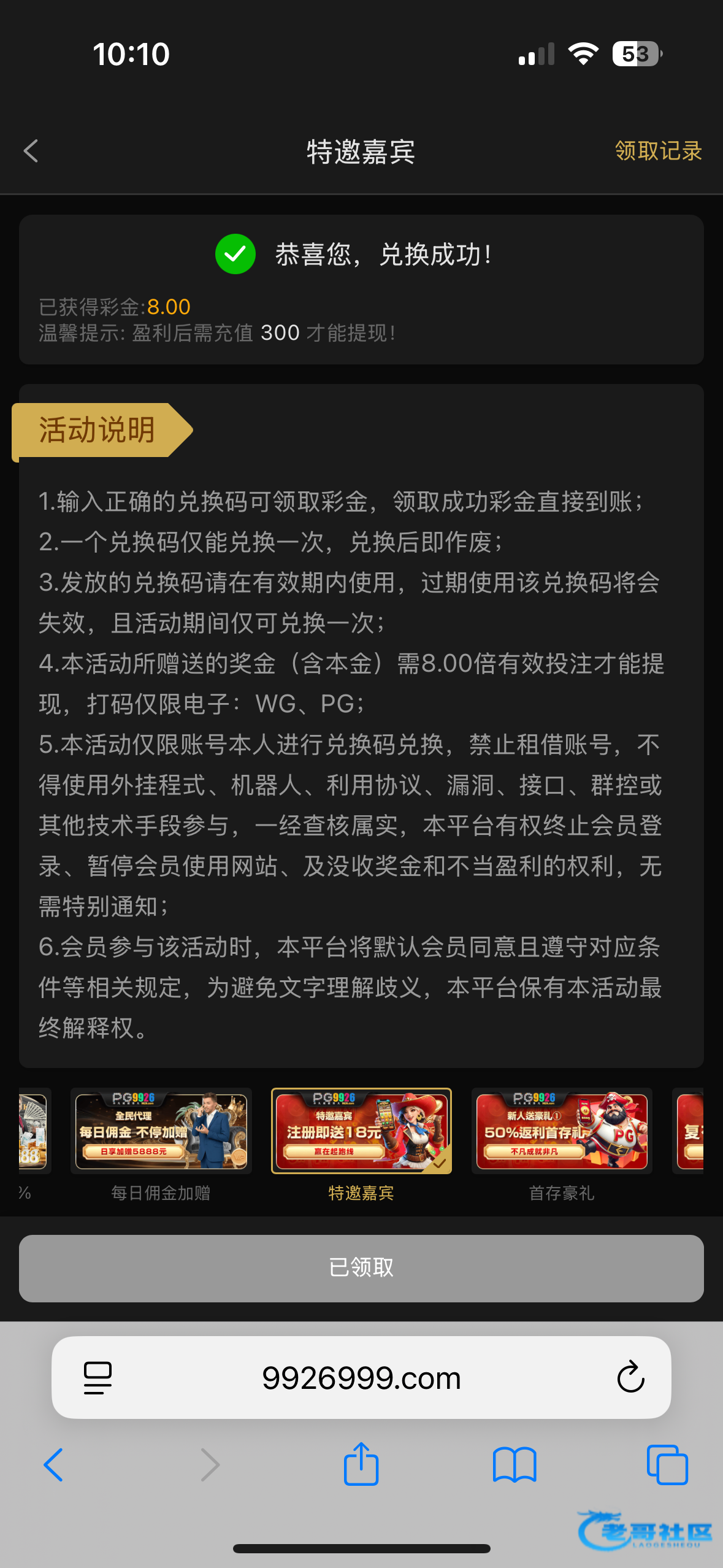 我在pg9926领了8块钱红包然后一直给我爆,后面提款需要充值300我藏了4个免费,麻2,麻1,足球,亡灵,然后充值50直接提了1900