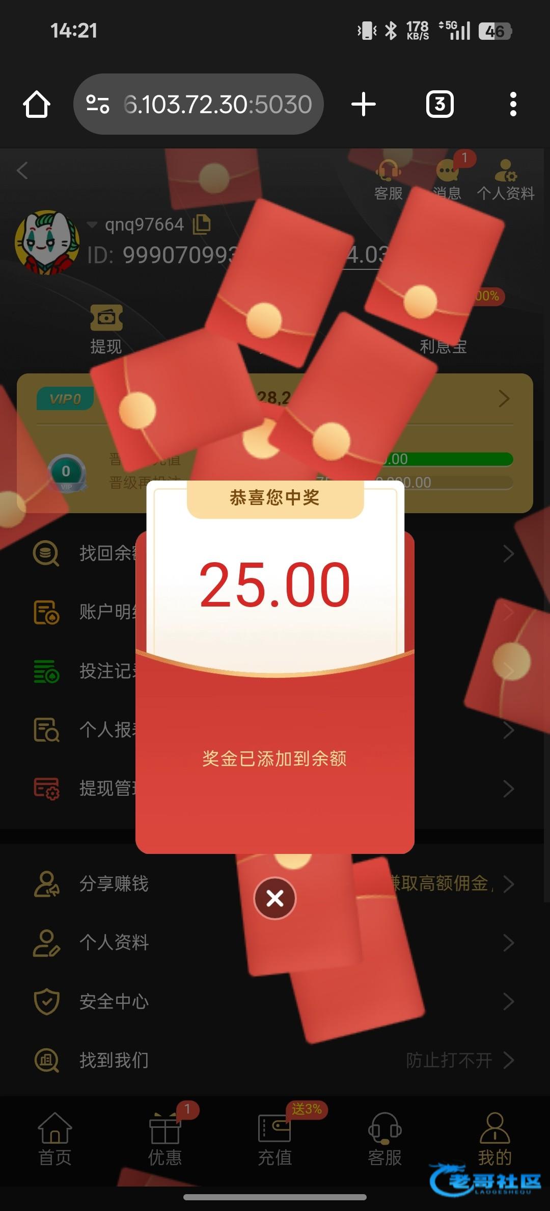 登录没有,特邀手机号领了10块,麻2大水老哥们可以冲