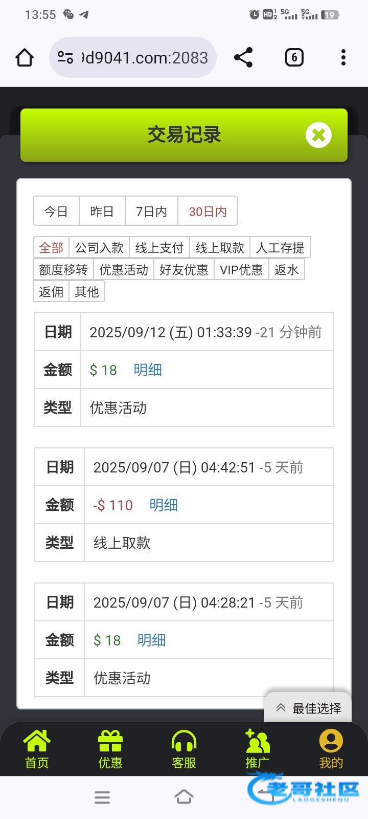几个月没充值最近送两次了,登录看看有没有https://m.9d9041.com:2083/MemberCenter/Transaction