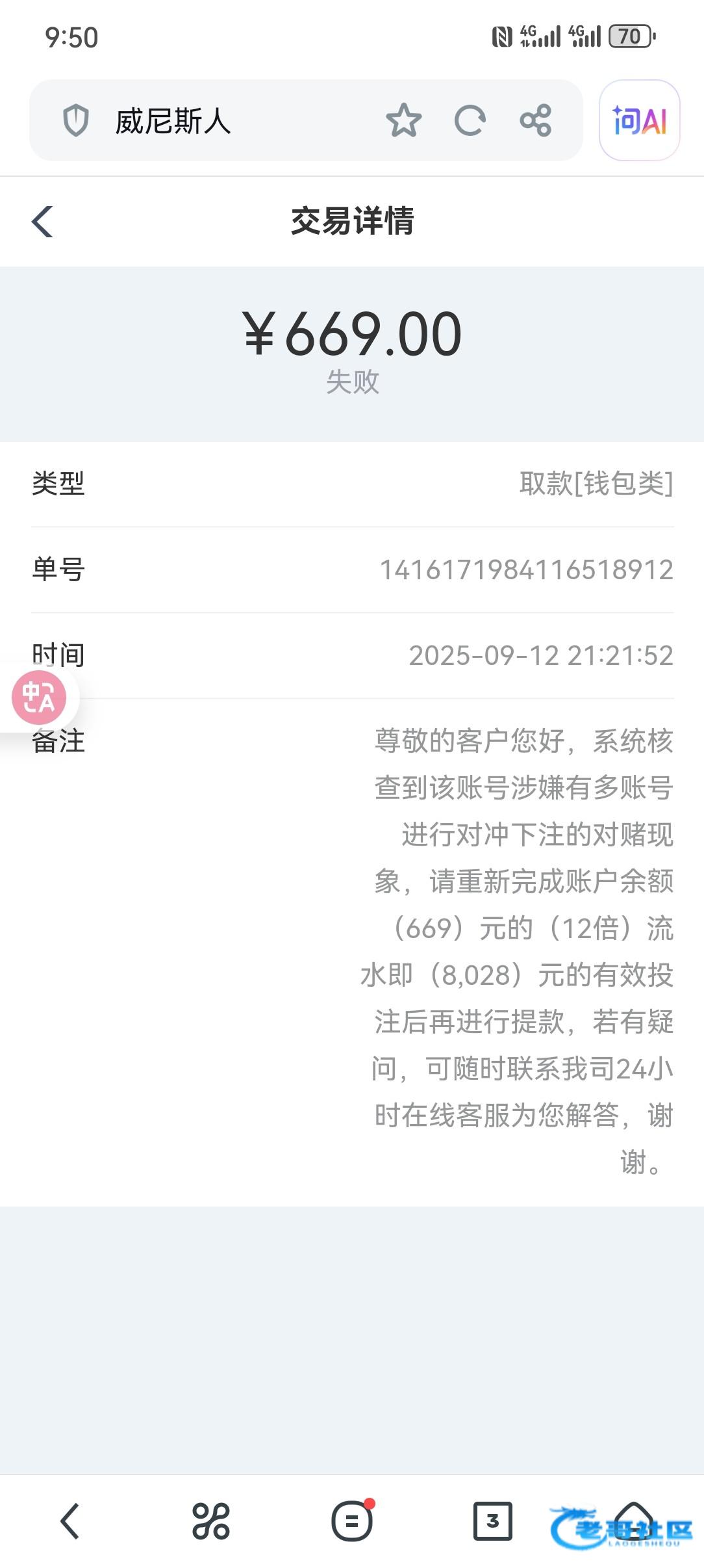 今天接到电话说送108回访彩金,打够3倍流水,让存余额的一倍再打3倍流水。存款打完流水以后提款669,说什么检测到对冲,再打余额669的12倍水。 搞这玩无限套娃呢。 这家的topay接口是金马 而另外一家威尼斯人(以前的万濠会) 还有新葡京(以前的利盈国际)的topay接口都是一样 以前还是挺信誉,现在都黑了 大家都注意点别去存了 月月打电话送,提款要存,现在直接开始黑了。 后面附图