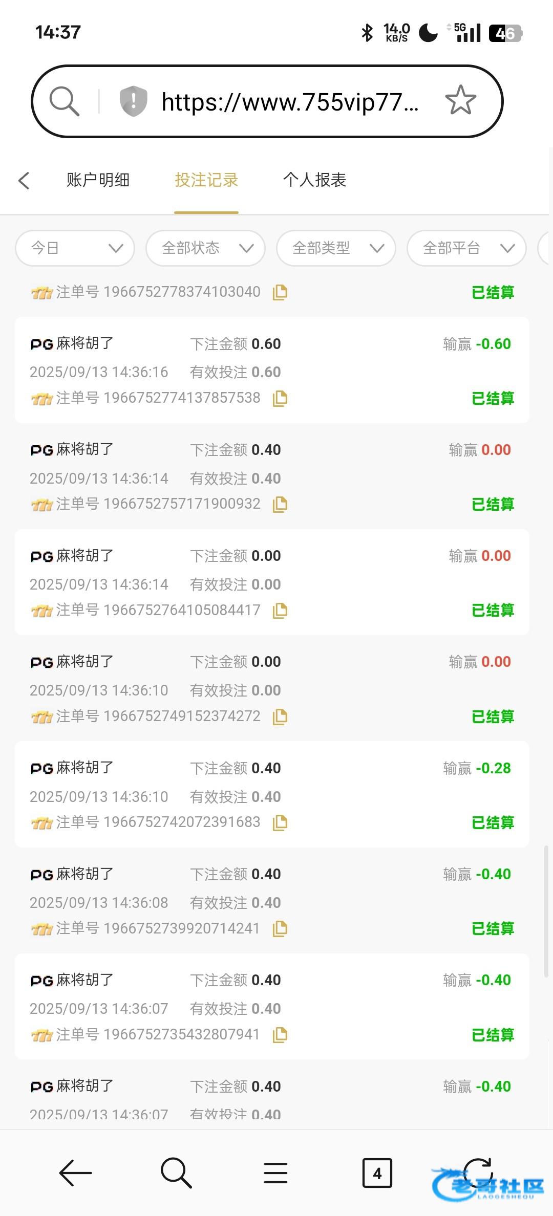 唉 今天又输300四毛六毛都是输